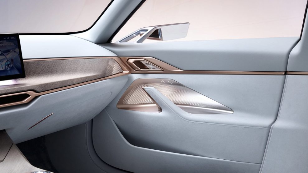 Indvendig er BMW gået efter bæredygtige materialer, og BMW-kendere vil genkende iDrive-konsollen i midten, mens BMW har strukket skærmen fra føreren helt til midterkonsollen (eller omvendt, om man vil).