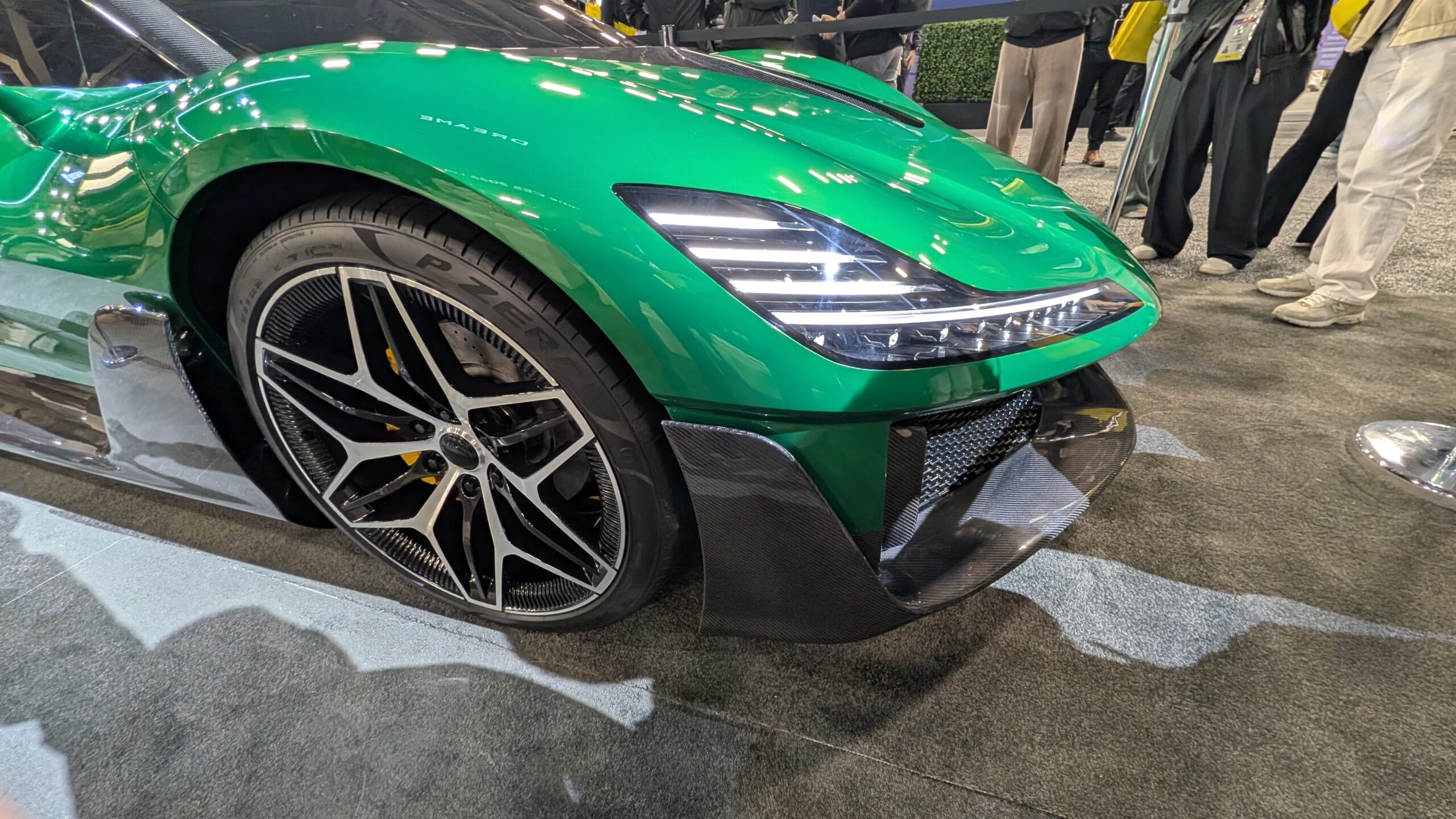 Bilen, der blev fremvist på messen, er en firedørs sportsvogn lakeret i en opsigtsvækkende grøn farve med omfattende brug af kulfiber på både karrosseri og stolper. Designet er præget af en skrånende motorhjelm, L-formede forlygter og gule bremsekalibre bag seks-egede fælge.
