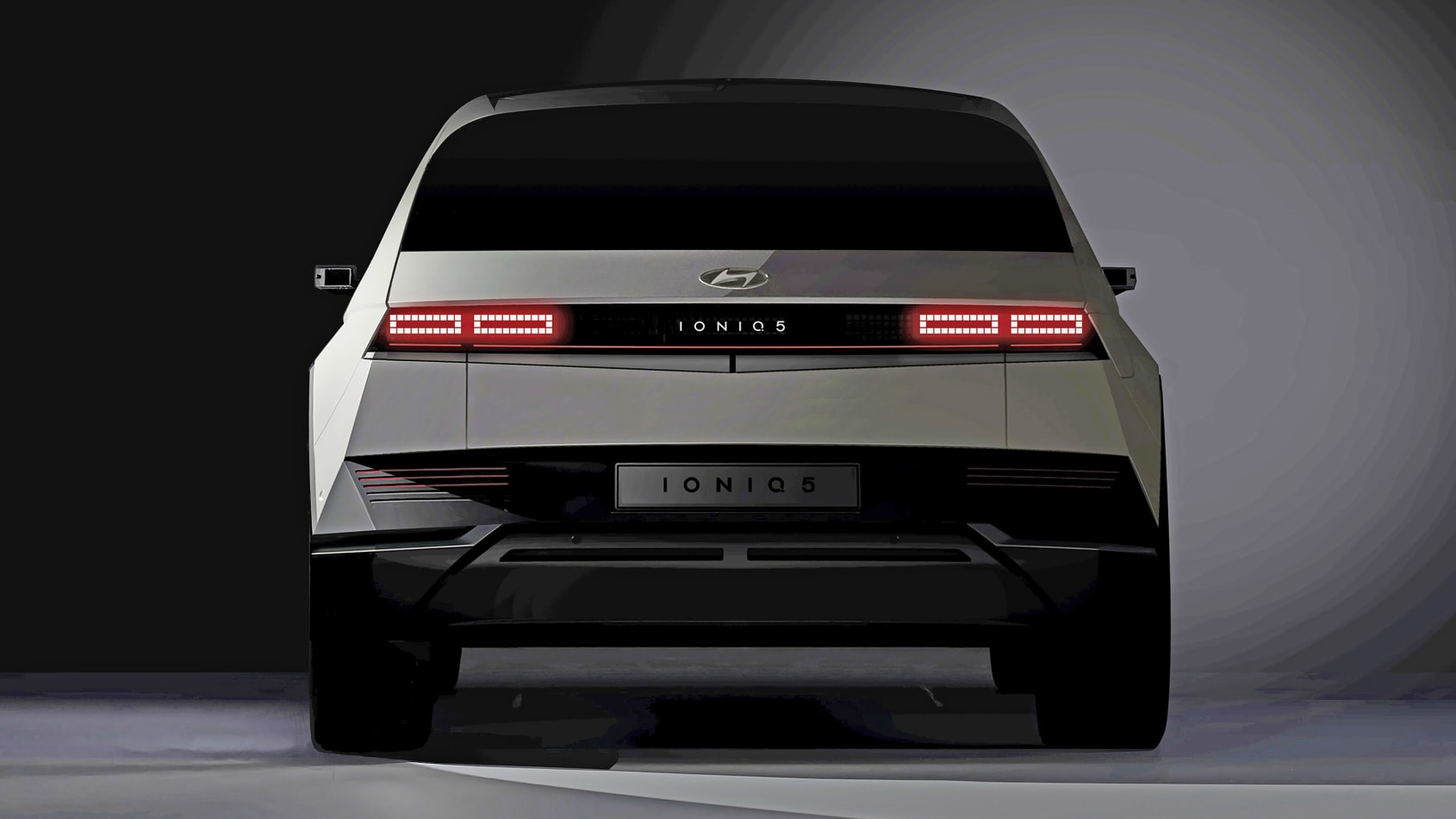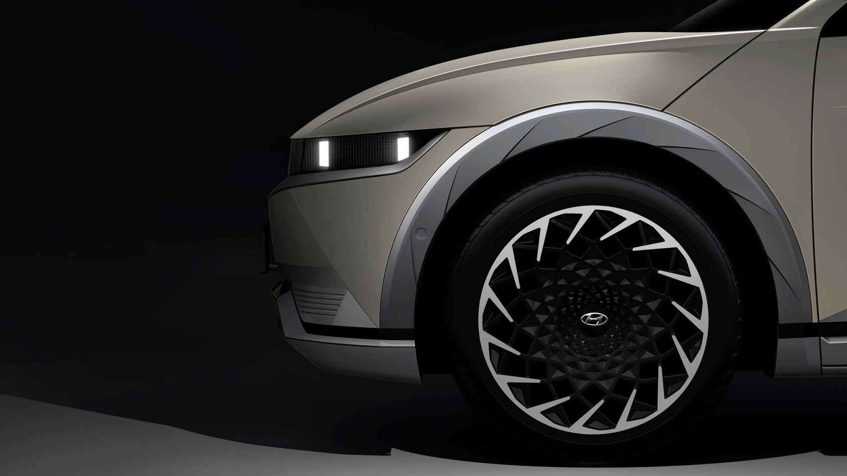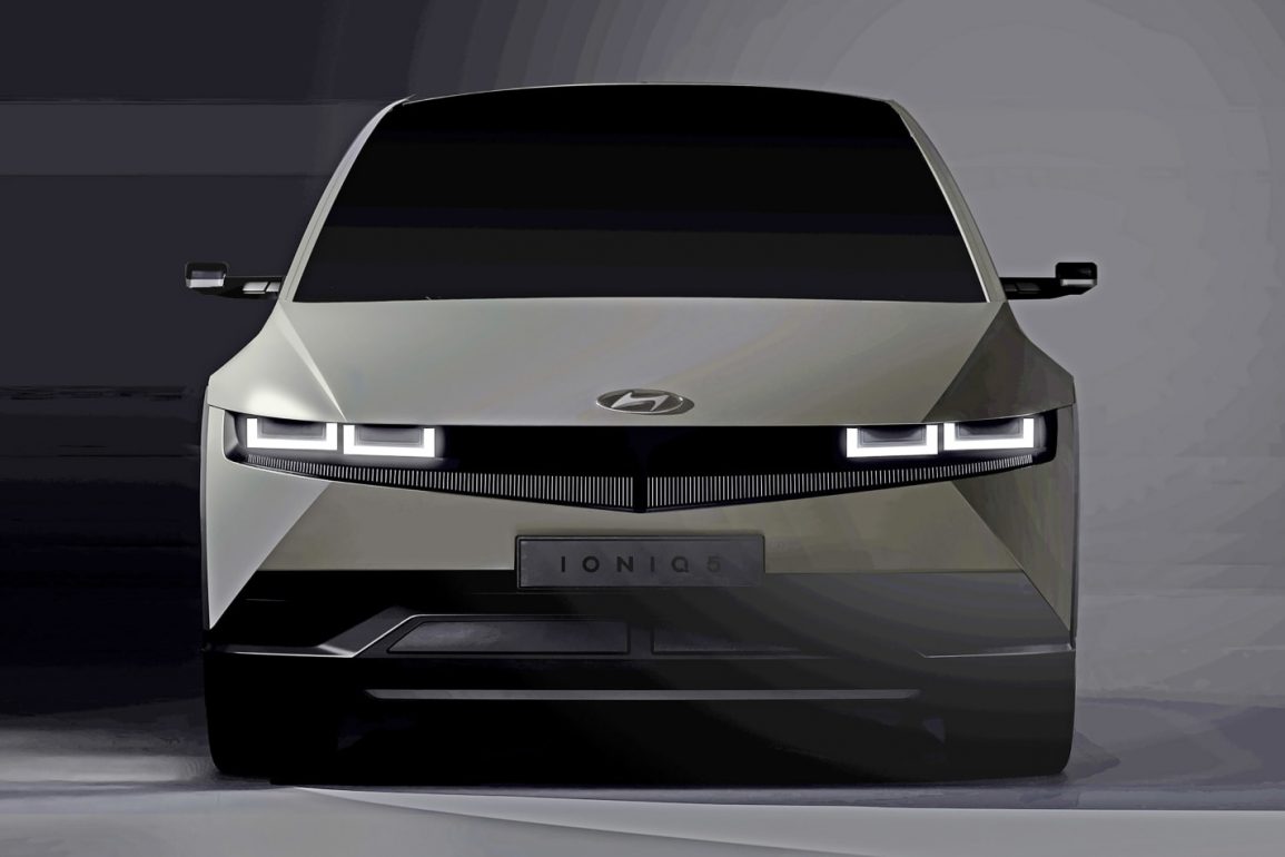 De karakteristiske firkantede pixel-forlygter fra konceptbilen er videreført på Ioniq 5, som sandsynligvis vil få en rækkevidde på op til 550 km med den største batteripakke.
