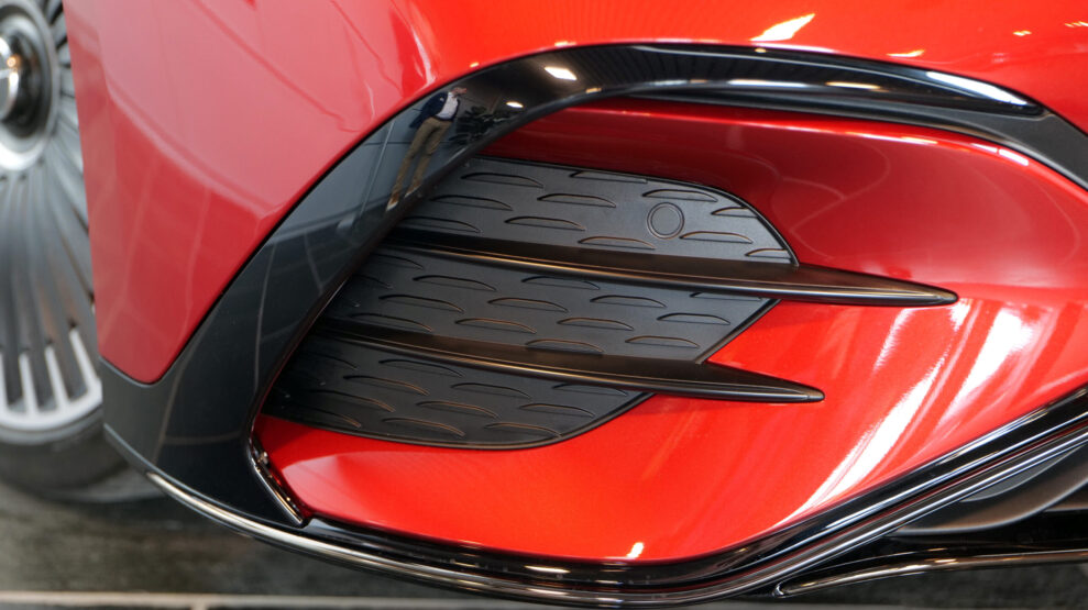 Der er ikke engang nogen frunk, ja, det er slet ikke muligt at åbne “motorhjelmen”. Påfyldning af sprinklervæske sker via en luge på venstre forskærm.