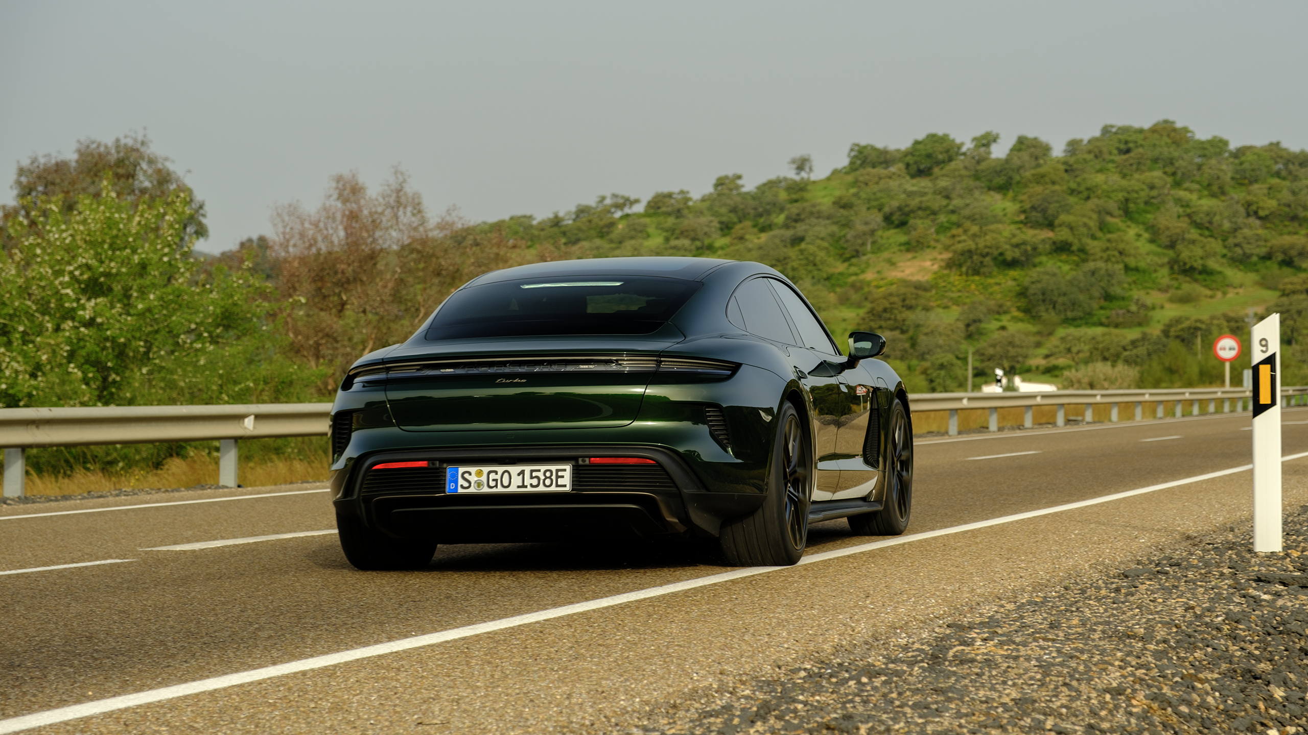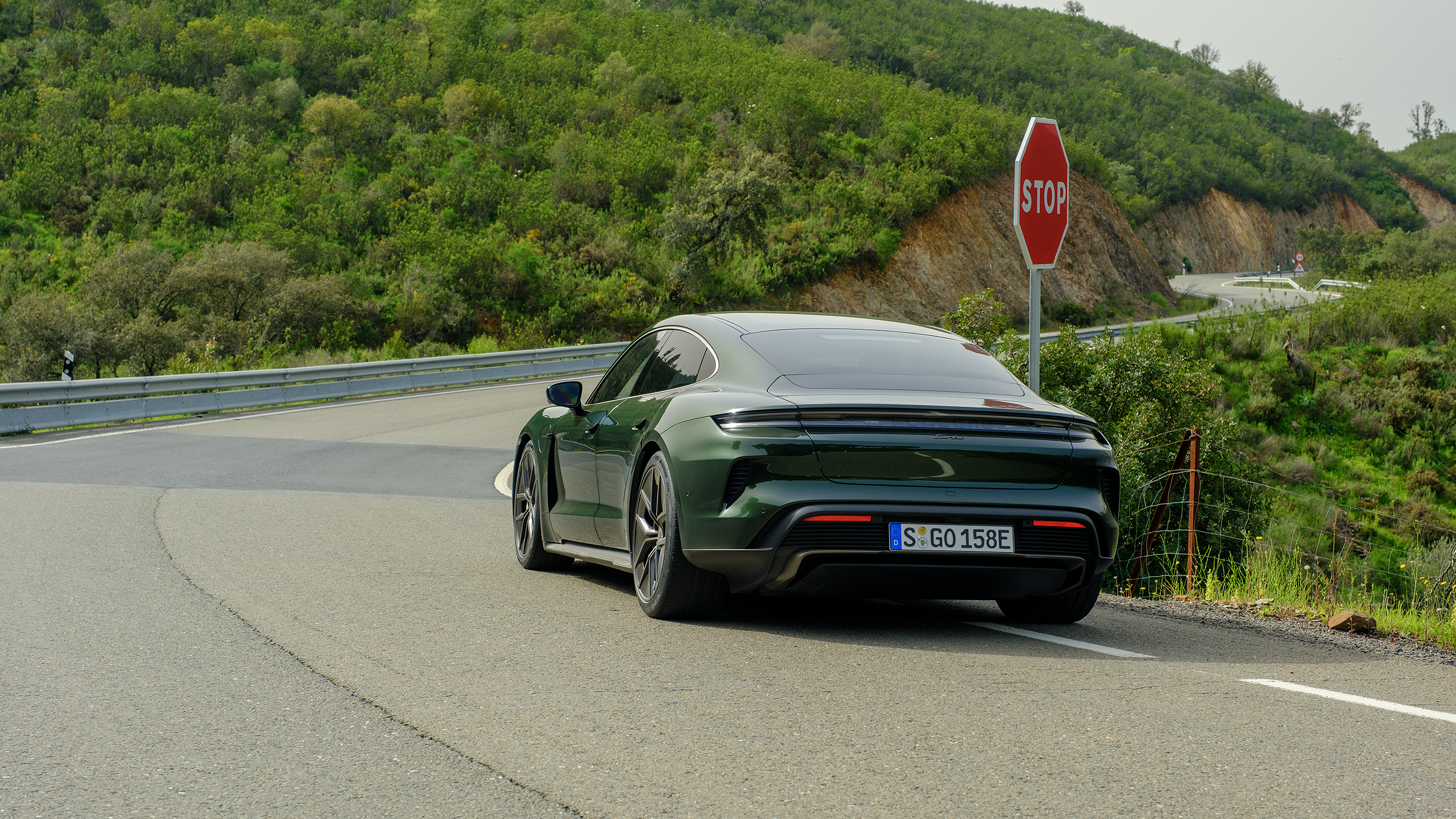 Vejene vestpå fra Sevilla går enten over flade sletter eller gennem et kuperet terræn med sving, der er tættere end forårets regnbyger. Vi valgte selvfølgelig den sidste rute. Destinationen var en lille bane kaldet Circuito Monteblanco, hvor udvalgte journalister ville få lov til at køre Taycan Turbo GT på banen.