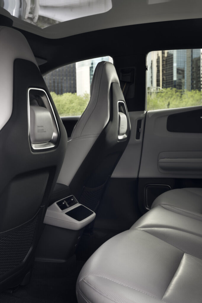Der er mange sikkerhedssystemer her, hele syv airbags og sikkerhedsfunktioner som lidar-radar på taget, 14 kameraer og 12 ultralydssensorer rundt omkring i bilen, som holder øje med føreren, passagererne og omgivelserne. Et kamera i kabinen sørger også for, at føreren er opmærksom under kørslen.