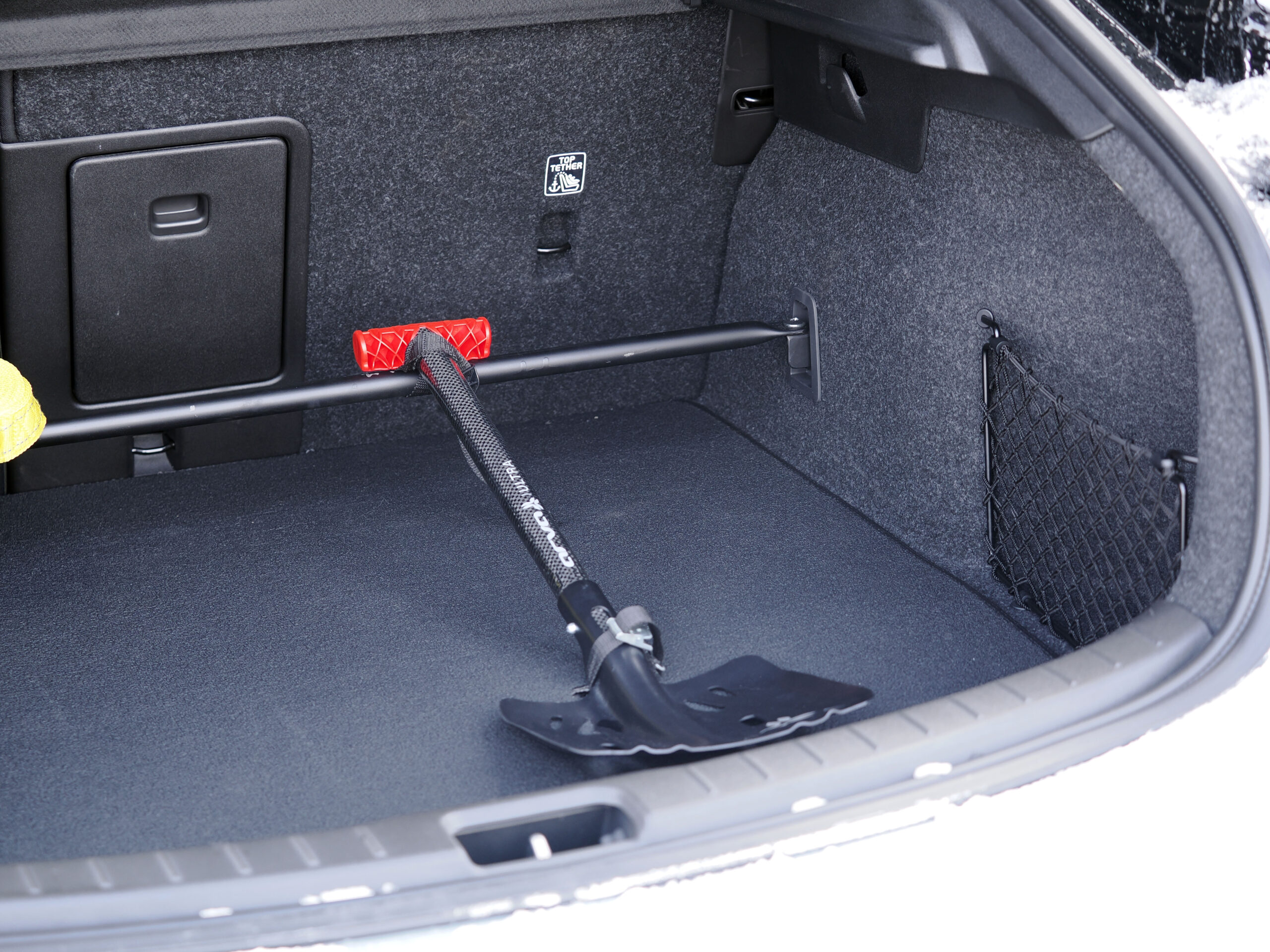 Polestar 2 Arctic Circle har, som man kan se på billederne, fire Stedi Quad Pro LED fjernlys, fastmonterede trækkroge foran og bagpå samt Recaro-sæder, og i bagagerummet finder man en sneskovl af kulfiber og et gult slæbetov.