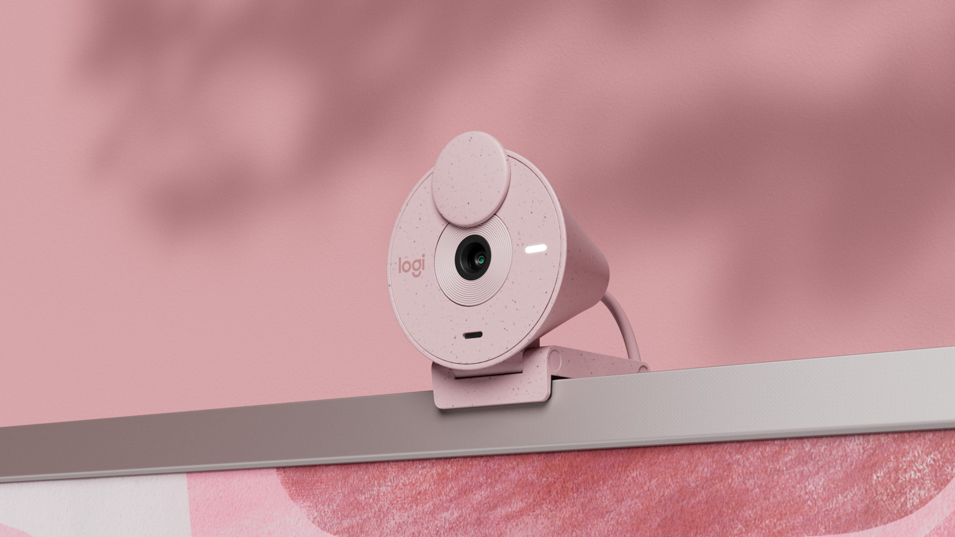 De fleste webcams er meget lidt elegante. Logitech Brio 300 har – om ikke andet – et design, der er andeledes end hovedparten. Kameraet fås i hvid, sort og en kulør, der benævnes rosa, men er fuldkommen samme farve som jordbæris. Kameraerne er fremstillet delvist af genbrugsplast.