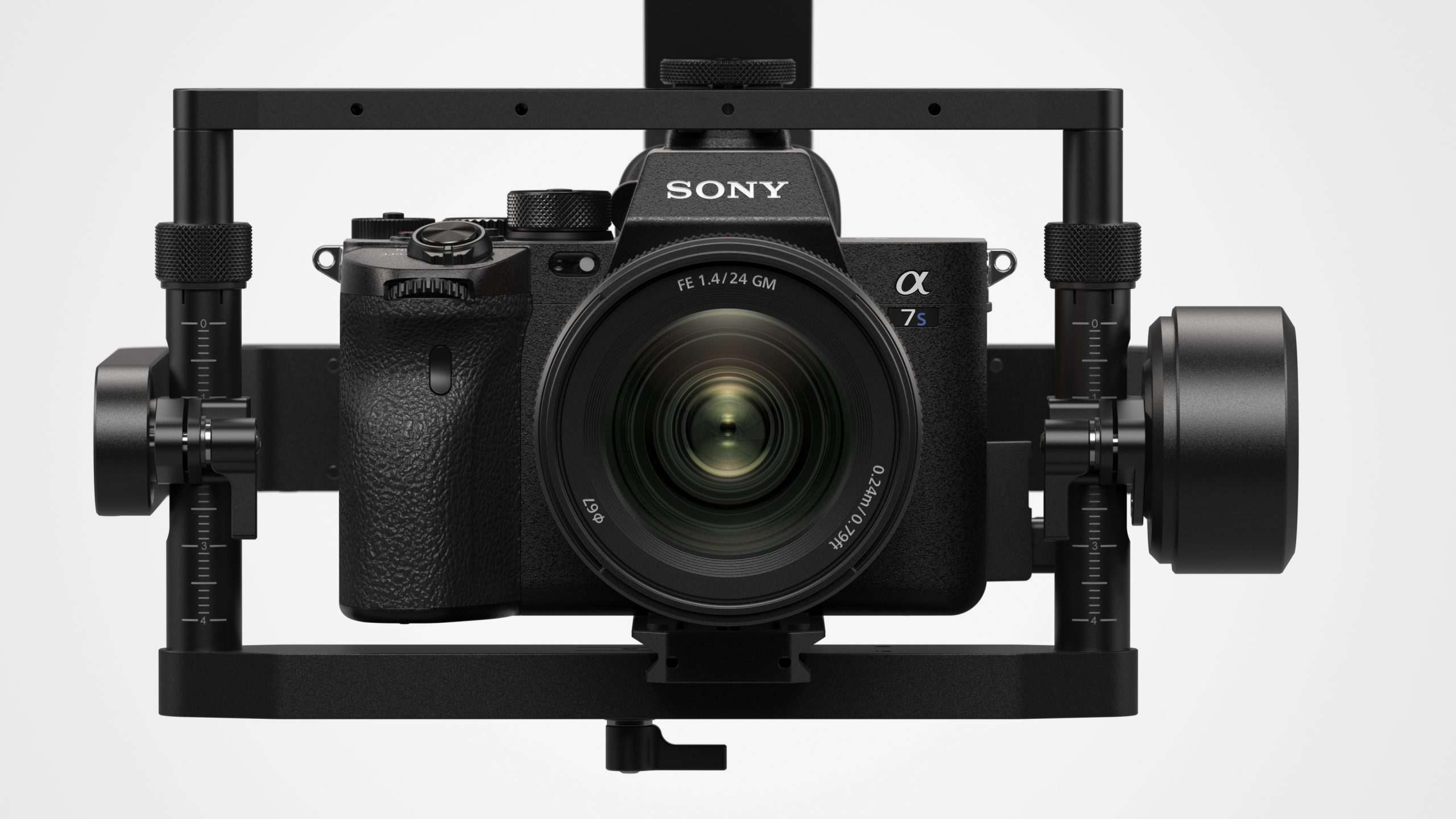 Den sorte drone med fire rotorer er kraftig nok til at løfte et systemkamera, og Sony har udsendt en video med et a7S III hængende under dronen, mens elbilprojektet Vision S blev filmet i Østrig.