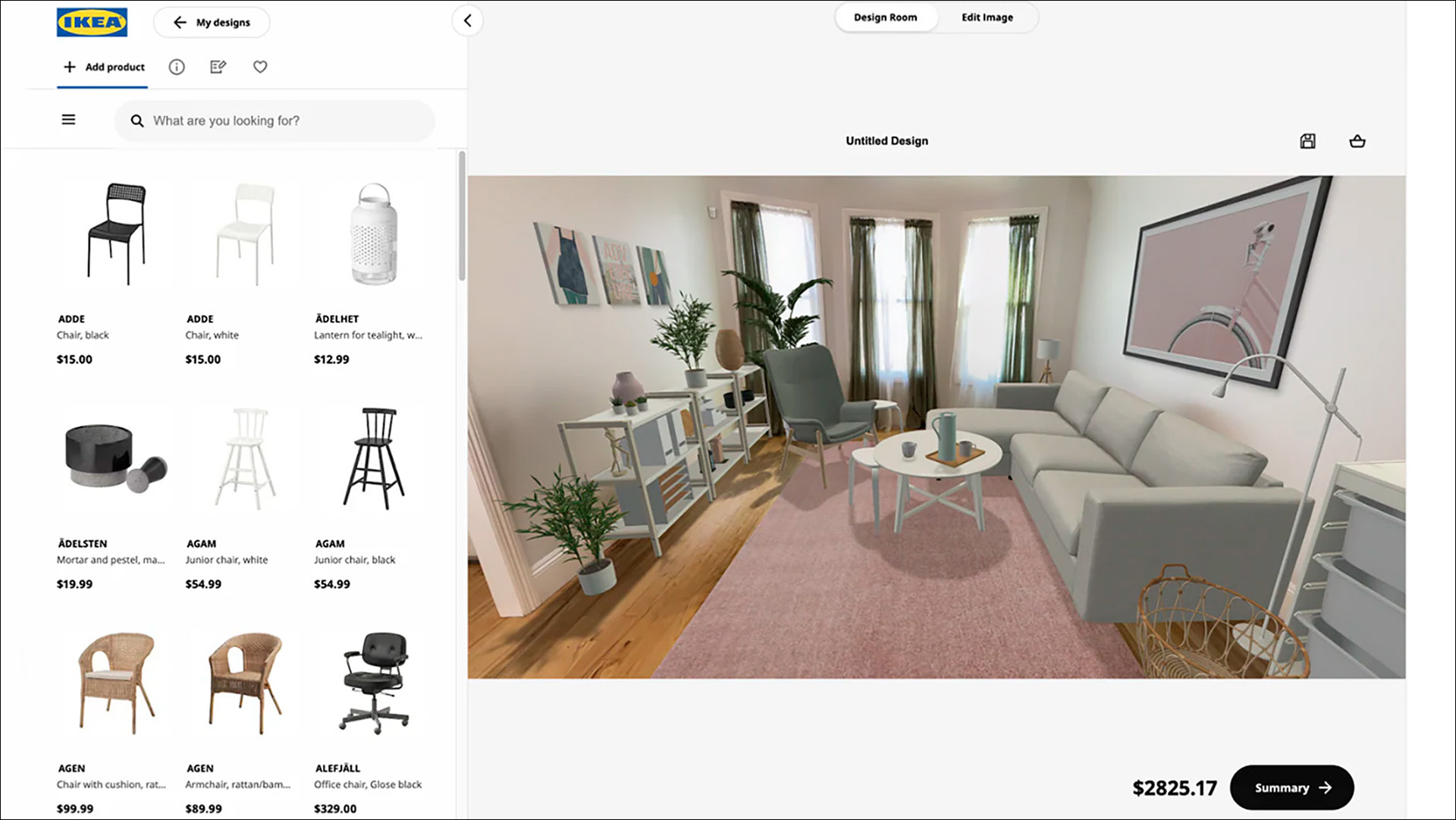 AI-algoritmen omdanner scanningen til en interaktiv 3D-model. Her er det muligt at fjerne eksisterende møbler, tilføje nye og redesigne indretningen, som man ønsker. Og skulle der undervejs i indretningen blive brug for møbler fra det velkendte møbelvarehus, kan man tilføje de valgte produkter til kurven eller dele indretningsforslagene med venner og familie.