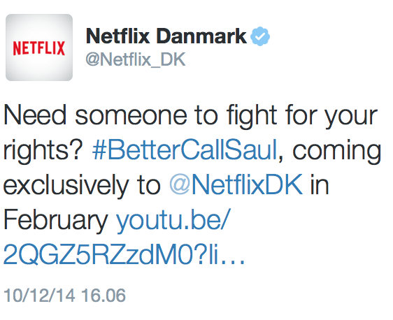 Netflix har i dag nemlig på firmaets danske Twitter-konto bekræftet, at den nye serie, som får navnet Better Call Saul, får premiere på dansk Netflix til februar.