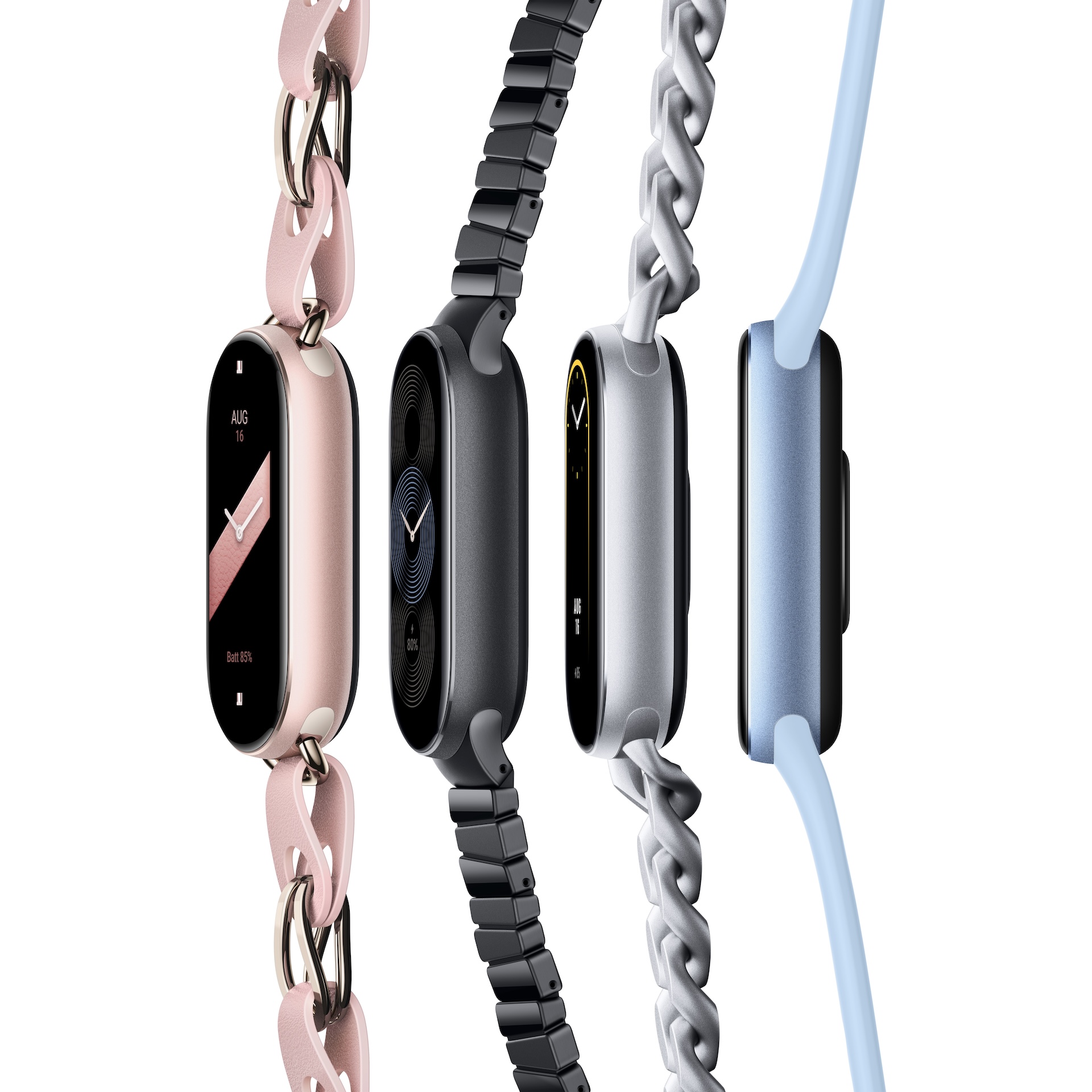 Xiaomi Smart Band 9 fås i sølv, sort, blå og pink, med titanium som en kommende farve.