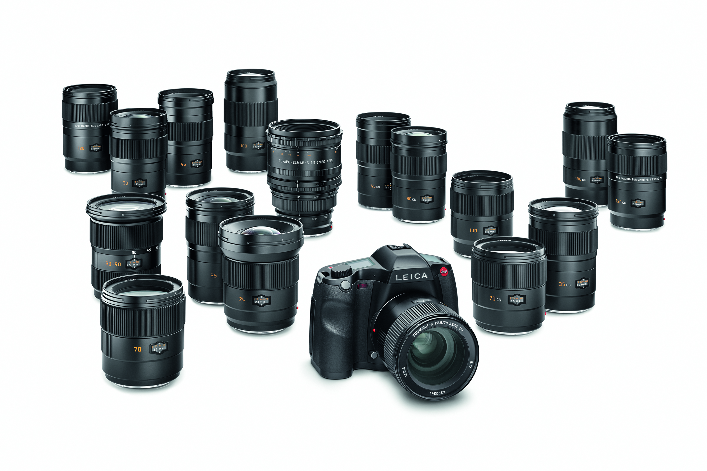 Leica har udviklet 16 objektiver til S-systemet, der spænder fra 24 til 180 mm, bl.a. en 35-90 mm zoom, som svarer til 35-mm-formatets 24-72 mm, og TS-APO-Elmar-S 120 f /5.6, som er et specialobjektiv til perspektivkorrektion.