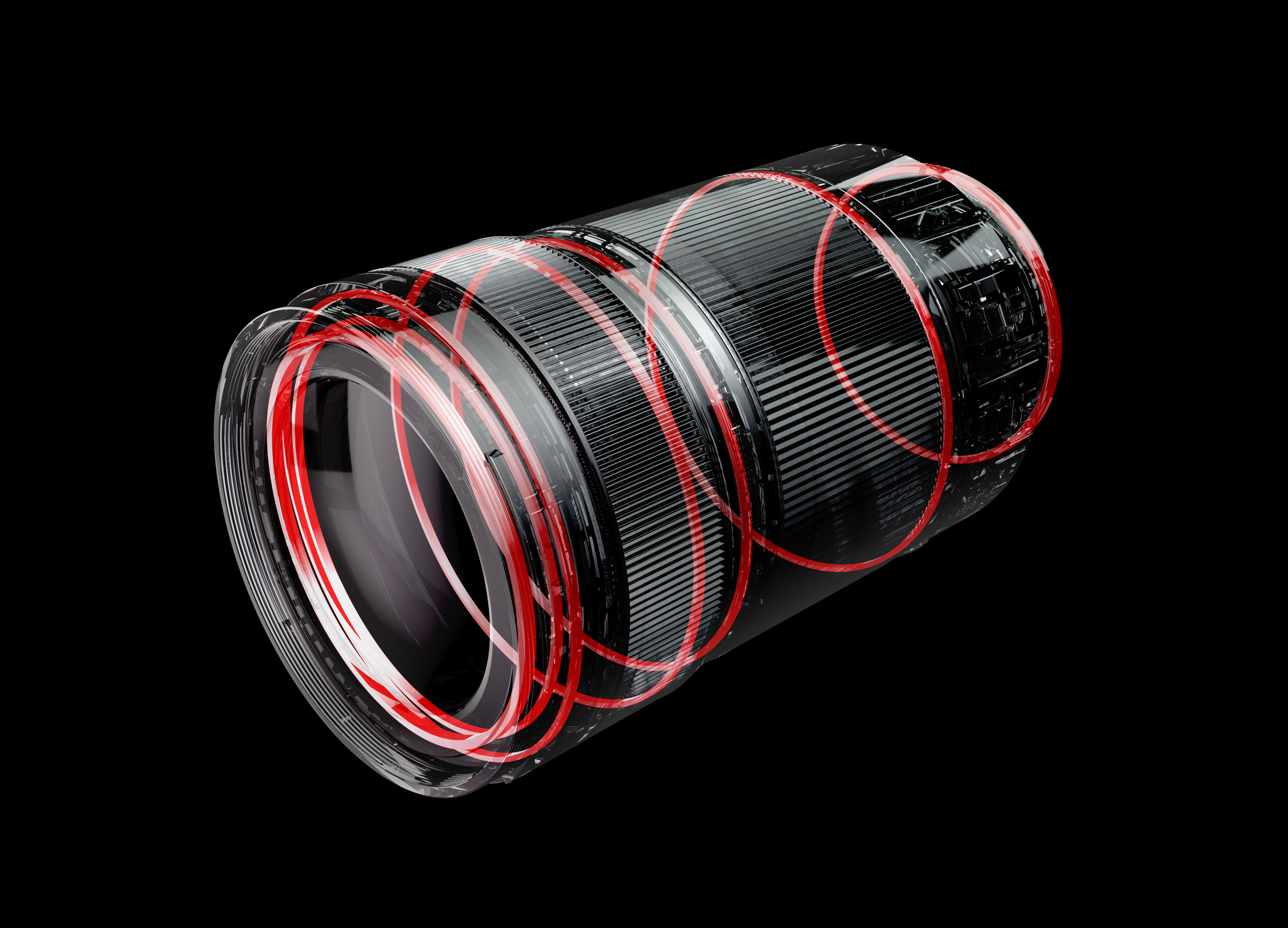 Indeni har zoomen 17 linse-elementer i 11 grupper med florinbelægning på fronten for at holde snavs og vanddråber væk.