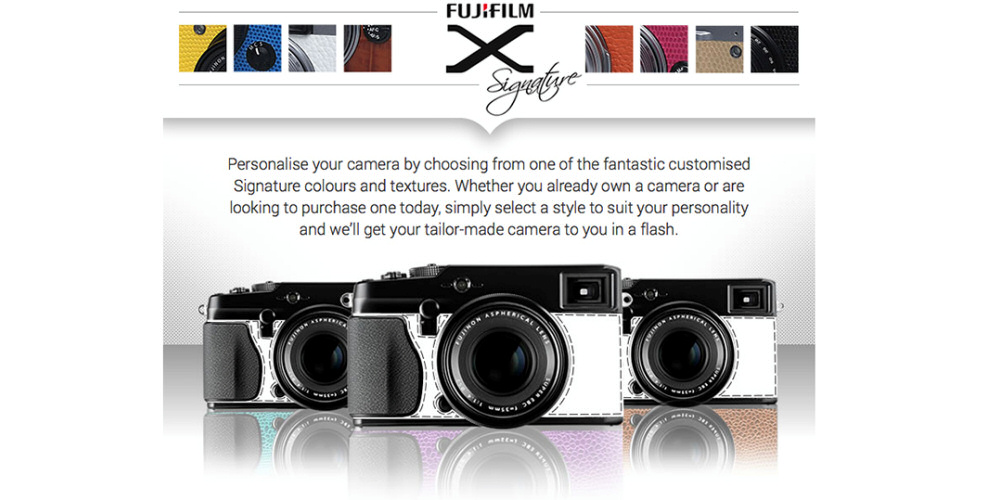 Tjenesten, som koster 130 Pund (ca. 1.180 kr) eller 100 Pund (ca. 900 kr), hvis du køber et kamera samtidig, giver dig valget mellem forskellige farver og teksturer på kameraet. X Signature-servicen gælder kameraerne X10, X20, X100, X-Pro1 og X-E1. Men den kommer også til X-E2 og X100S på et senere tidspunkt.