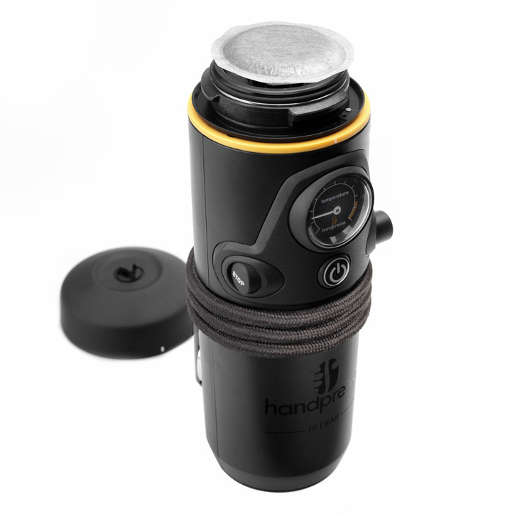 Det franske firma Handpresso har eksisteret siden 2008, hvor de lavede en fuldt transportabel espressomaskine, hvor de 16 bars tryk opnås med en håndpumpe, og det varme vand skal medbringes i termokande. Biludgaven giver ikke helt så mange nørd-points, men virker mere praktisk anvendelig.