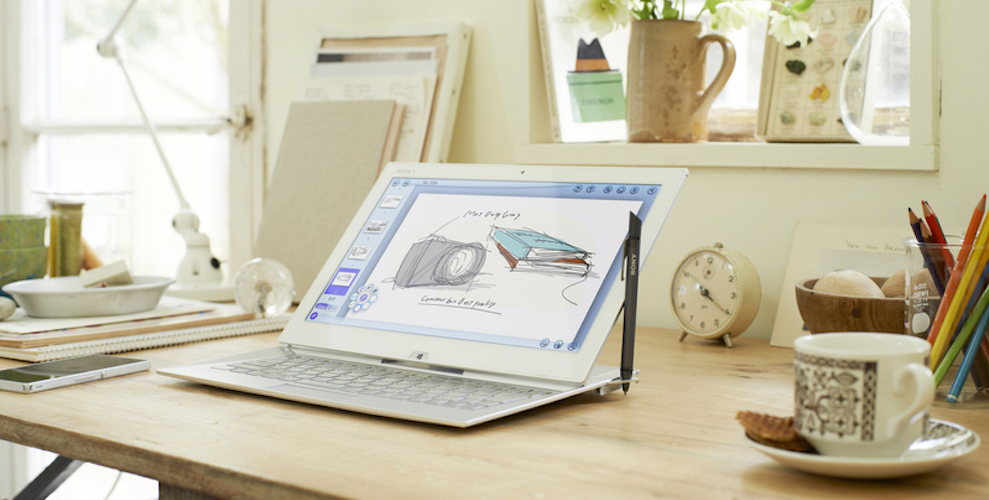 I det tidlige forår testede vi forgængeren, Sony VAIO Duo 11, og var jævnt tilfredse med Sonys hybridcomputer. Omend vi ikke faldt bagover af begejstring. Duo 11 havde en skærm på 11,6″ med fuld HD-opløsning og ydede ganske glimrende. I udgangspunkt lignede Duo 11 en stor tablet-computer, men skærmen kunne så bevæges opad via en slæde til en vinkel på cirka 45 grader, og frem kom så det tastatur, der hidtil lå skjult under skærmen. Desværre var tastaturet – på grund af enhedens størrelse – en del mindre end et almindeligt tastatur, hvilket gjorde det til en pine at skrive på.