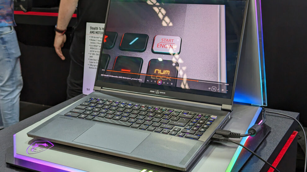 MSI Stealth 16 Mercedes-AMG Motorsport er resultatet af et samarbejde mellem taiwanesiske MSI og tyske Mercedes-AMG. Laptop-computeren, der vil blive produceret i et begrænset antal, har et kabinet af en magnesium-aluminiumslegering i afdæmpet selenitgrå. Symbolsproget er så tydeligt, at selv bil-analfabeter kan få øje på det.