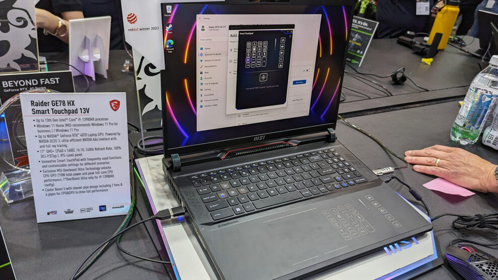 En anden nyhed var MSI Raider GE78HX, der har fået den såkaldte Smart Touchpad, der er usynligt indlejret i kabinettet, og som kan skifte størrelse. På andre usynlige touchpads kan det være svært at finde det rigtige sted at højreklikke, men det var klogeligt markeret på kabinettet. Og den haptiske feedback med et piezoelement gav en realistisk følelse af at have klikket, selv om selve metalfladen var ubevægelig.