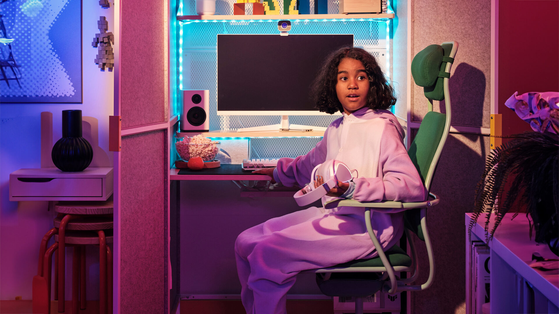 Det handler om at gøre det så nemt for folk at træde ind og ud ad den virtuelle verden og skabe et hjem, hvor der er plads til, at man kan samles om spilleoplevelsen,” siger Henriette Ekholm, indretningsekspert hos IKEA Danmark.