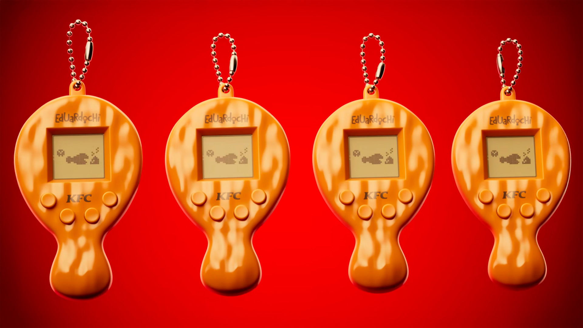 Nu har fastfood-kæden KFC fået et pludseligt hit med deres egen uofficielle kopi af Tamagotchien. Eduardochi, som legetøjet hedder, er et kyllingelår i plastic med en utydelig sort-hvid LCD-skærm, ganske som på originalen. Med fire knapper (33 procent flere knapper end på originalen) kan man sørge for det virtuelle kyllingelårs velbefindende.