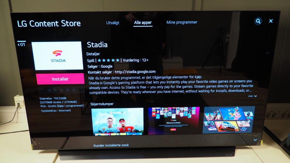 Google Stadia til LG-TV’er er tilgængelig til download i 22 lande, deriblandt Norden. Tjenesten er kompatibel med LG smart-TV’er, der kører operativsystemerne WebOS 5.0 eller 6.0. I praksis vil det sige 2020-modeller og nyere.
