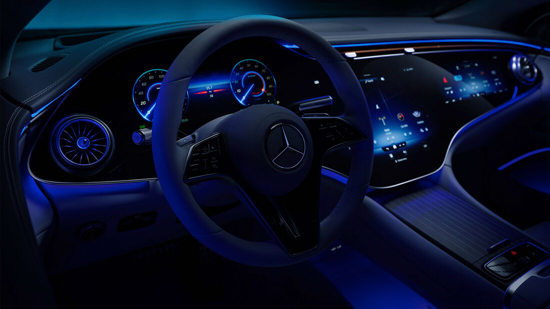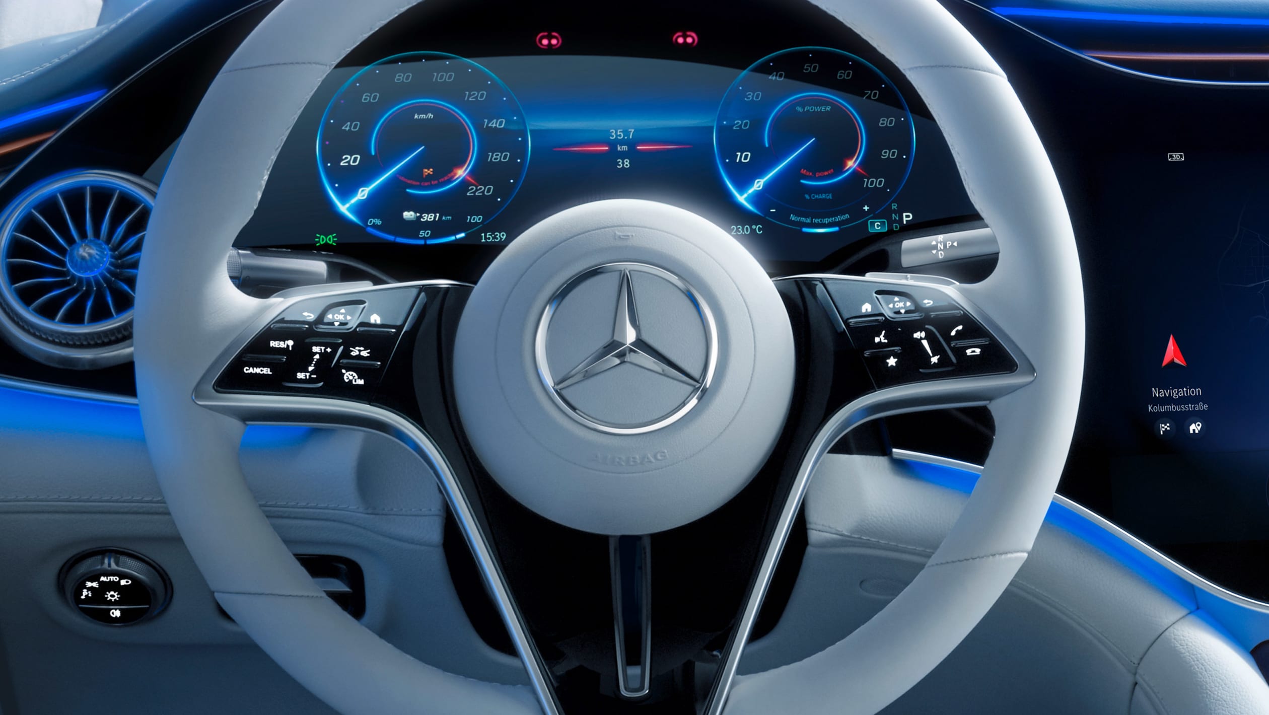Med otte processorkerner, 24 gigabyte RAM og 46,4 Gbit/s hukommelsesbåndbredde er MBUX Hyperscreen det smarteste infotainment-system, Mercedes-Benz hidtil har lavet. Bl.a. får man intelligent navigation, hvilket betyder, at bilen altid ved, hvilken rute der er mest energieffektiv i forhold til bilens rækkevidde. Systemet tager højde for ladestop, vejrforhold og terræn.