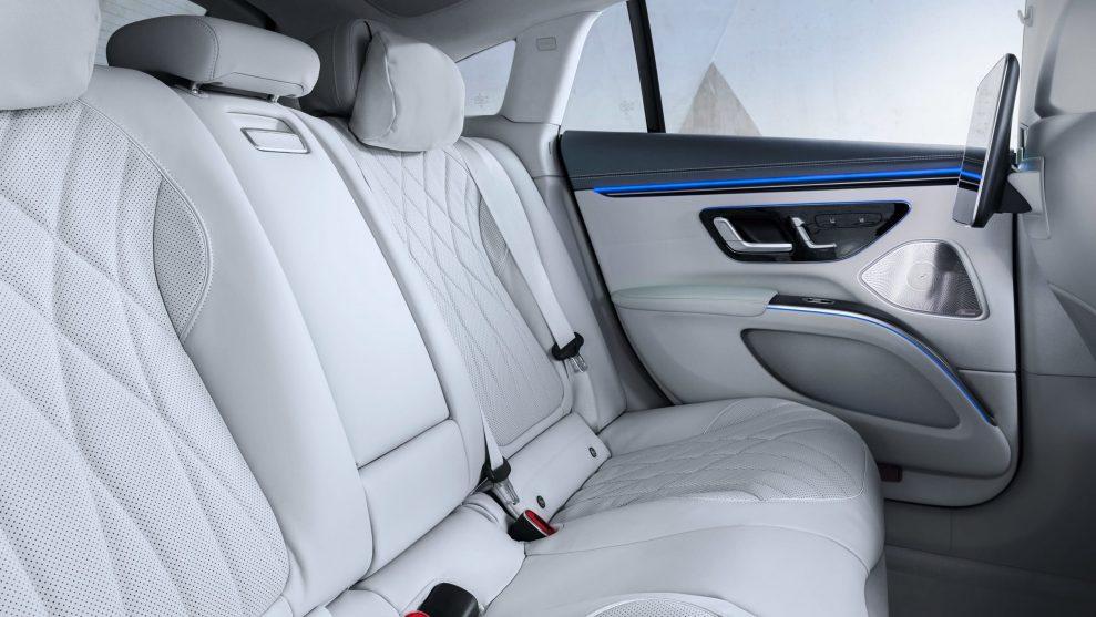 Som prikken over det teknologiske i har EQS også fået sin egen sci-fi-agtige lyd i kabinen under acceleration. Men der kan også være helt stille. Eller man kan flytte koncertsalen ind i bilen via Burmester-anlægget …