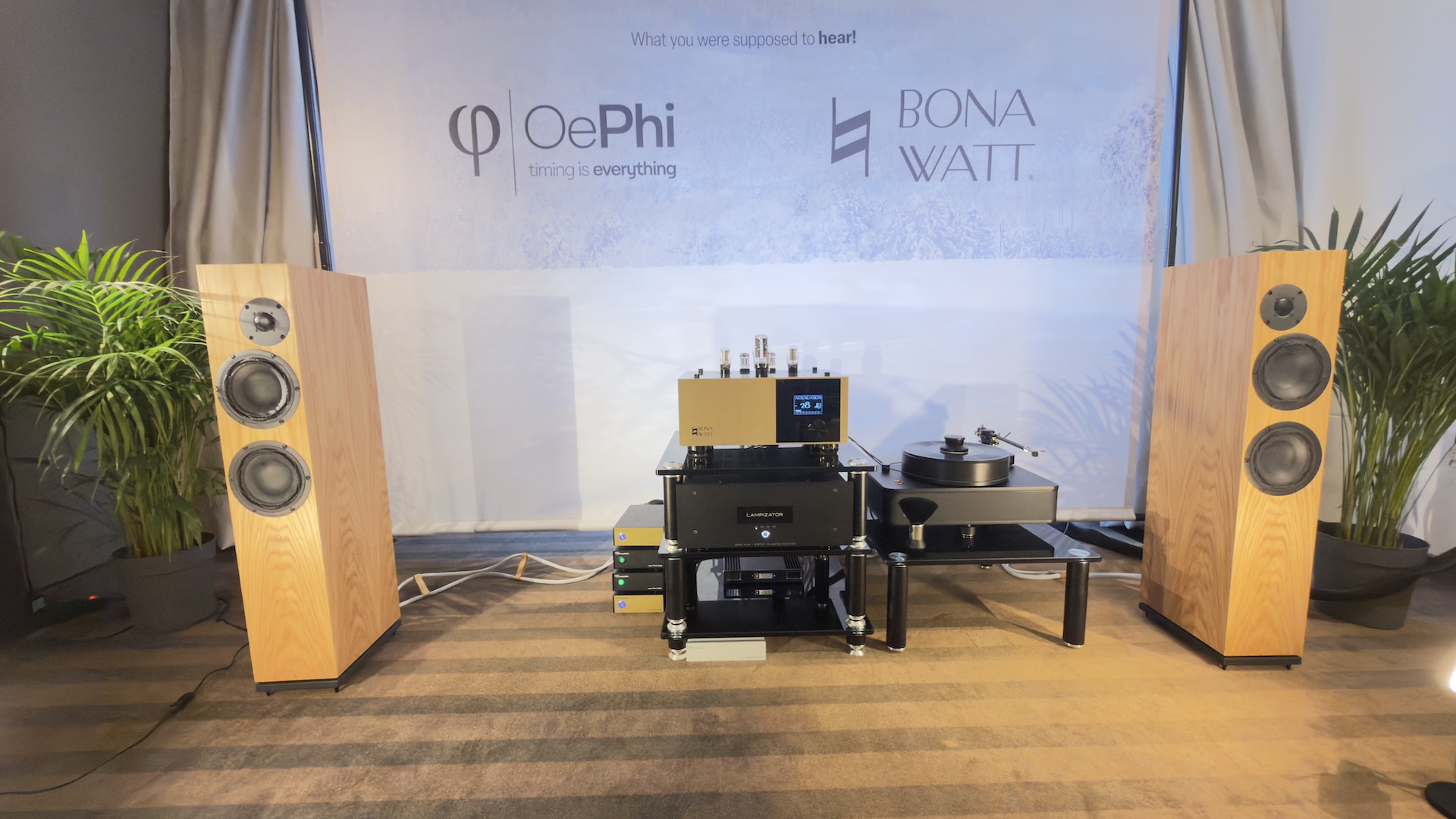 Det lokale firma Bonawatt fra Warszawa leverede elektronikken i mange rum, herunder her med OePhi-højttalere. Bonawatt’s hybrid Triton 2 x 250 W, udviklet i samarbejde med MuzgAudio, leverede en meget tiltalende lyd på alle de højttalere, jeg hørte den på.