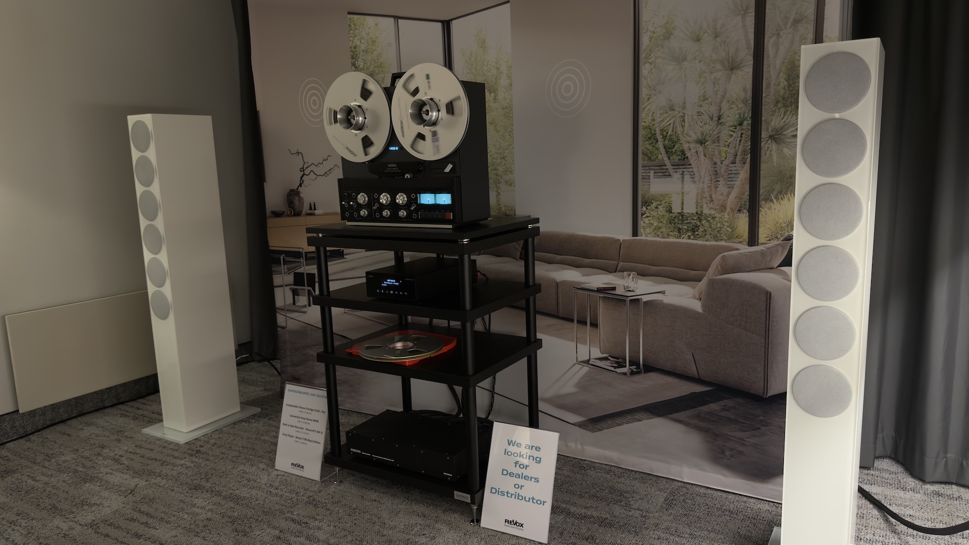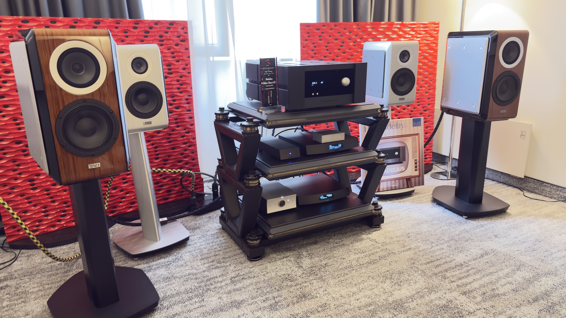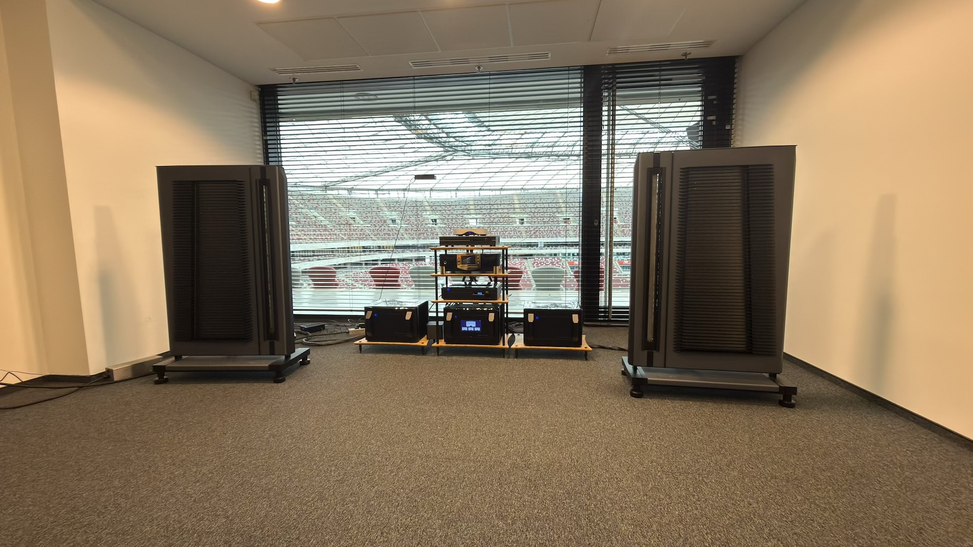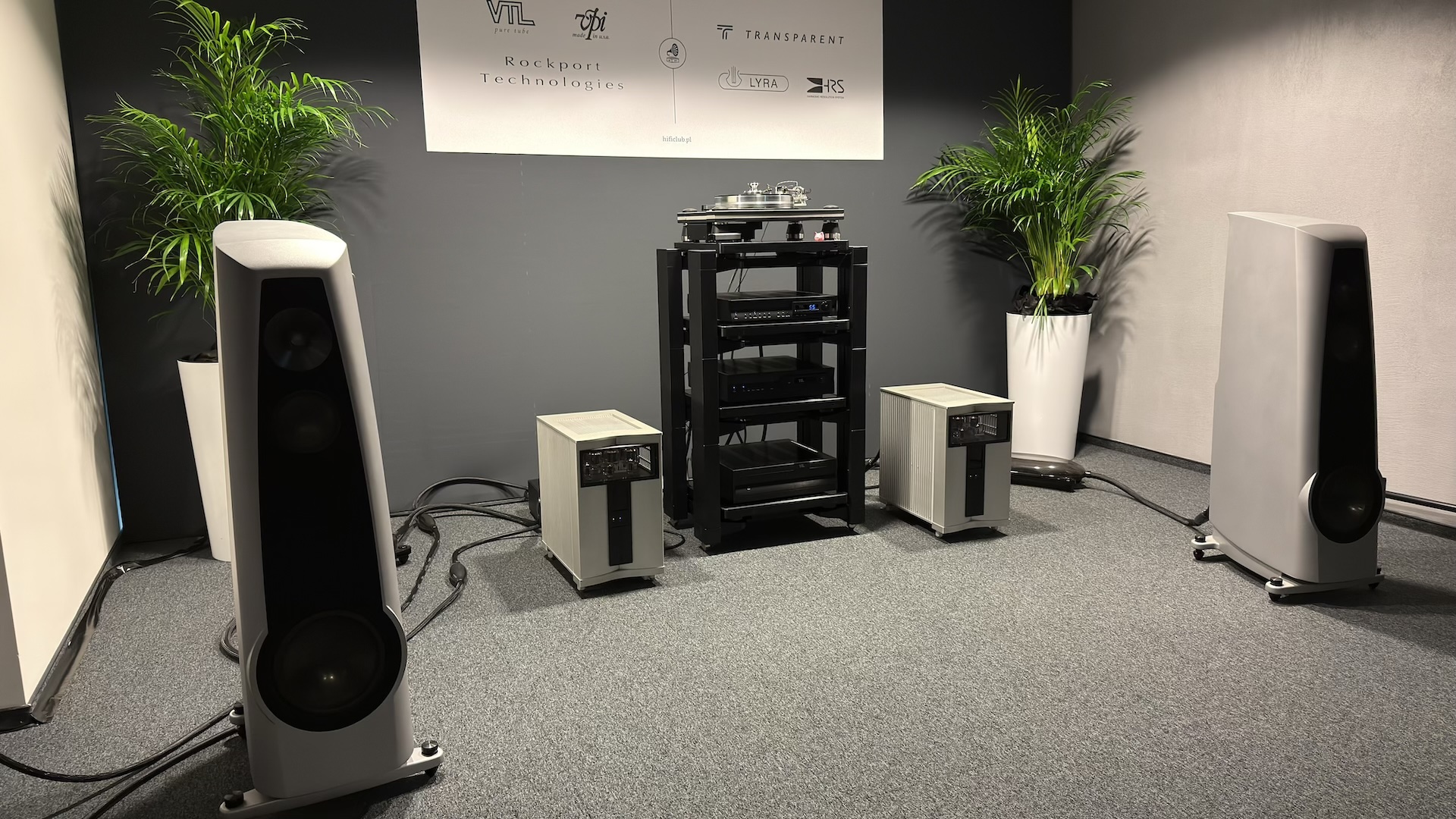 Wadax streamer og DAC, med forstærkere fra Soulution, spillede ekstremt dynamisk på tyske Göbels Divin Noblesse. Et par gulvhøjttalere, der når ned til 21 Hz og har en følsomhed på 95 dB, leverede en dynamisk ydeevne, som få andre kunne matche.
