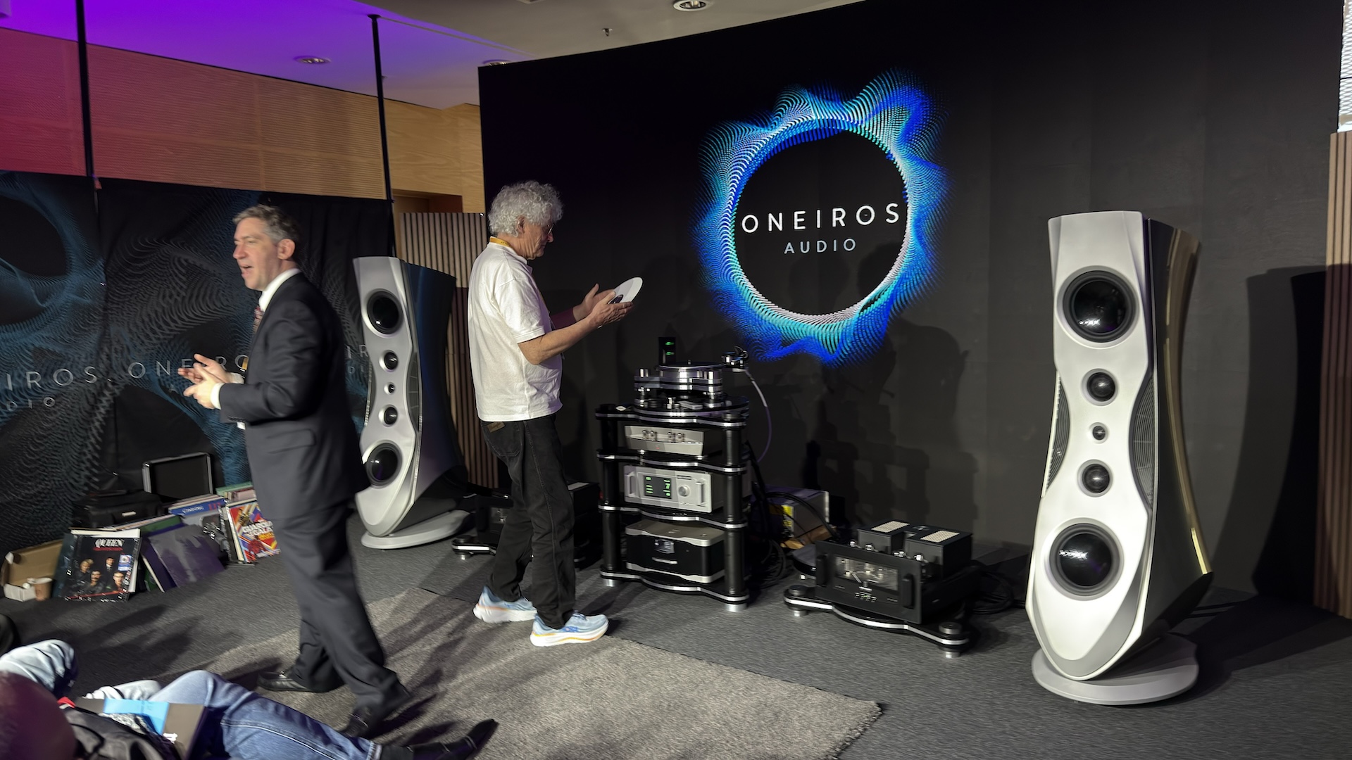 Det engelske firma Oneiros har kun eksisteret siden 2023 og fremstiller disse: et par 1,6 meter høje, 140 kg tunge højttalere lavet af kulfiber og CNC-fræset stål. Her drives de af rørforstærkere fra Audio Research og med en VPI Avenger Statement som lydkilde. Det er ikke ofte, jeg har hørt en så høj og klar lyd på samme tid. Højttalerne er bygget med to 10-tommer basenheder, som de selv har designet, to 3-tommer mellemtoneenheder og en 1-tommer diskant med en diamantbelagt membran. Frekvensområdet er angivet til 20 – 35.000 Hz, og for hele herligheden skal de have 650.000 euro.