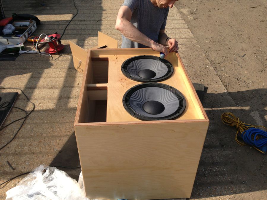 Et af de 14 baskabinetter samles. De er opbygget på samme måde som i 1950’erne og 60’erne. Med store basrefleksporte og en høj afstemningsfrekvens. Det giver ifølge lydingeniør John Klett en mere åben lyd.