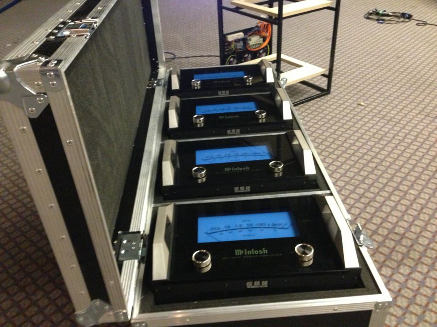 Den samlede effekt for Despacio-systemet er altså omkring 50.000 watt. Og her er subwooferne ikke medregnet! I hvert tårn er der monteret fem enorme håndbyggede forstærkere fra McIntosh. Bas og mellemtone varetages af fire såkaldte MC 1.2KW monoblokke. Som navnet mere end antyder, har disse forstærkere en nominal effekt på 1.200 watt hver. I praksis leverer de dog omkring 2.000 watt ved fuld udstyring.