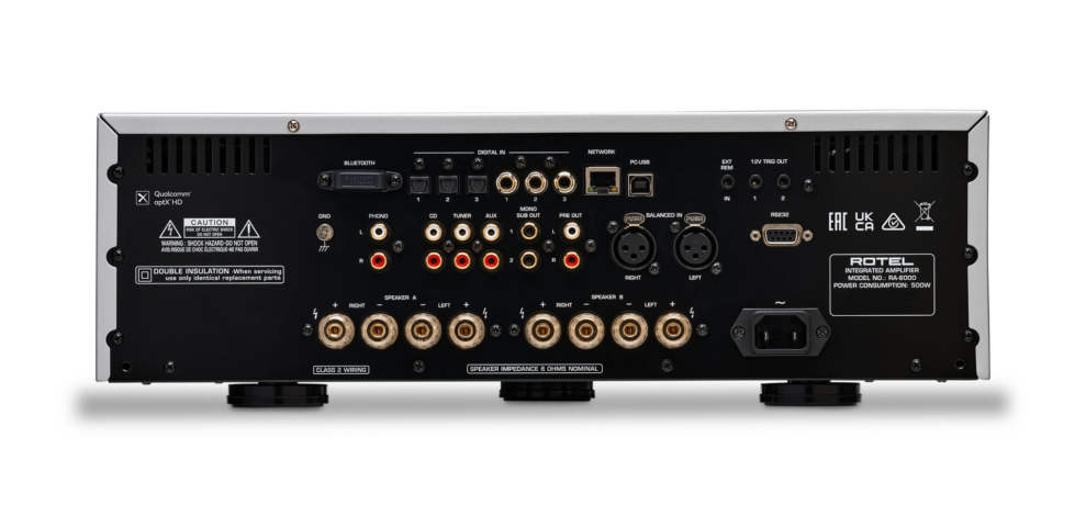 For RA-6000’s vedkommende betyder det håndviklede transformatorer samt 200 watt i 8 ohm og 350 watt i 4 ohm. Hvilket burde række rigeligt til selv de mest tungtdrevne højttalere.