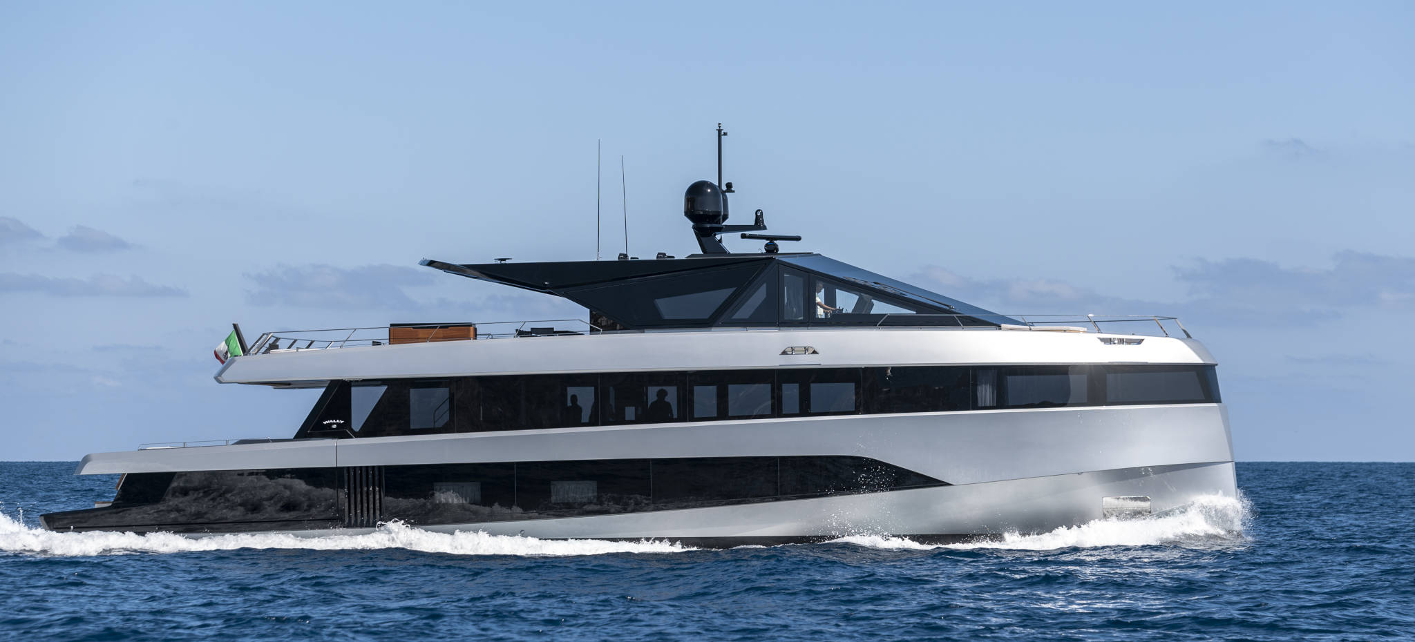 Den 89 fod lange wallywhy200 drives fremover af Volvo Penta-motorer med IPS-drev og op til 1.000 hk, og der er plads til 20 personer ombord. De kan nyde hummer og champagne til lyden af Sonus fabers indbyggede højttalere, drevet af flere hundrede watt effekt fra McIntosh-forstærkere skjult i indretningen.
