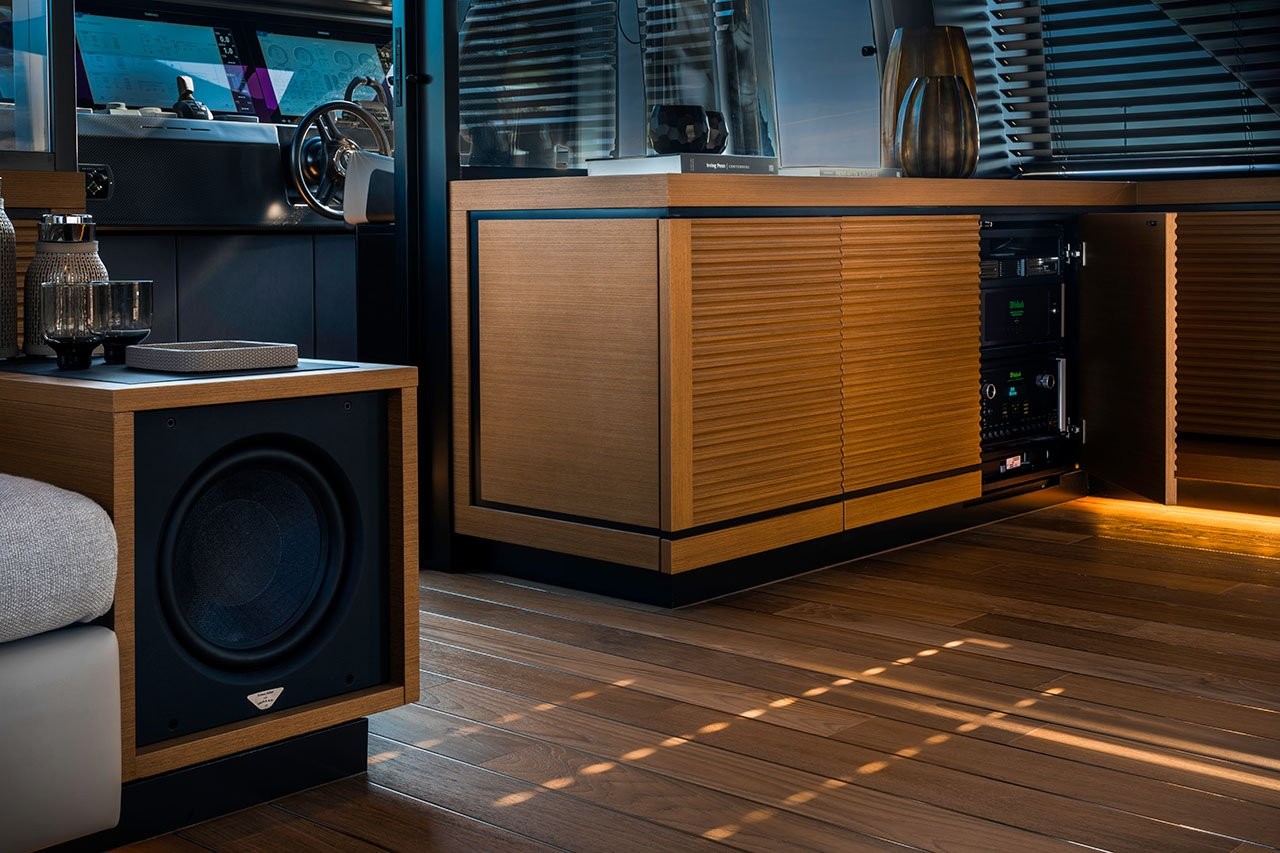 De færreste tænker over, at yacht hi-fi faktisk er et begreb. Som altid drejer det sig om skræddersyede løsninger, der er lavet efter kundens ønsker. I dette segment lader man sig ikke nøjes med en marin CD-receiver og et par stænksikre indbygningshøjttalere.