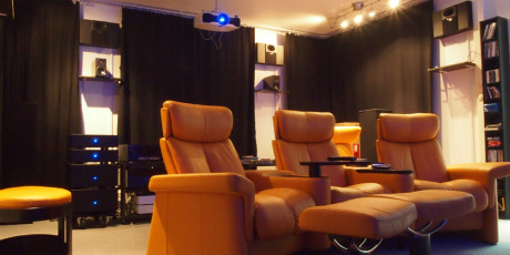 Vores eksisterende lytterum var i forvejen bygget som et “rum i rummet” med dobbelte vægge, forsænket loft og vibrationsdæmpende gulv. Derfor kunne vi koncentrere os om at forbedre rummet indvendig. Øverst på ønskelisten stod installation af et nyt højttalersystem. Derfor begyndte processen med at planlægge et optimalt rum omkring disse højttalere, kombineret med god akustik, komfortable siddepladser og et kæmpe billede. Vi havde på forhånd lagt et fornuftigt budget, som vi ganske vist sprængte med glans – men det var det værd!