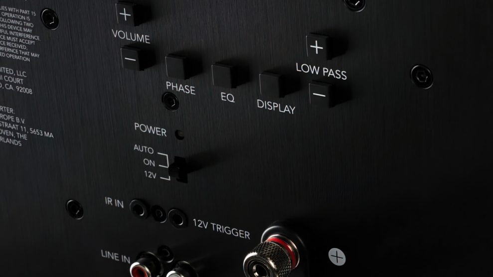EQ kan også indstilles med fjernbetjeningen, og desuden er der 12 volt trigger-kontakter på bagsiden, som kan styres fra en receiver eller processor og f.eks. kan indstilles, så CD-indgangen på receiveren aktiverer indstillingen Deep, mens Blu-ray-indgangen sætter subwooferen til Loud.