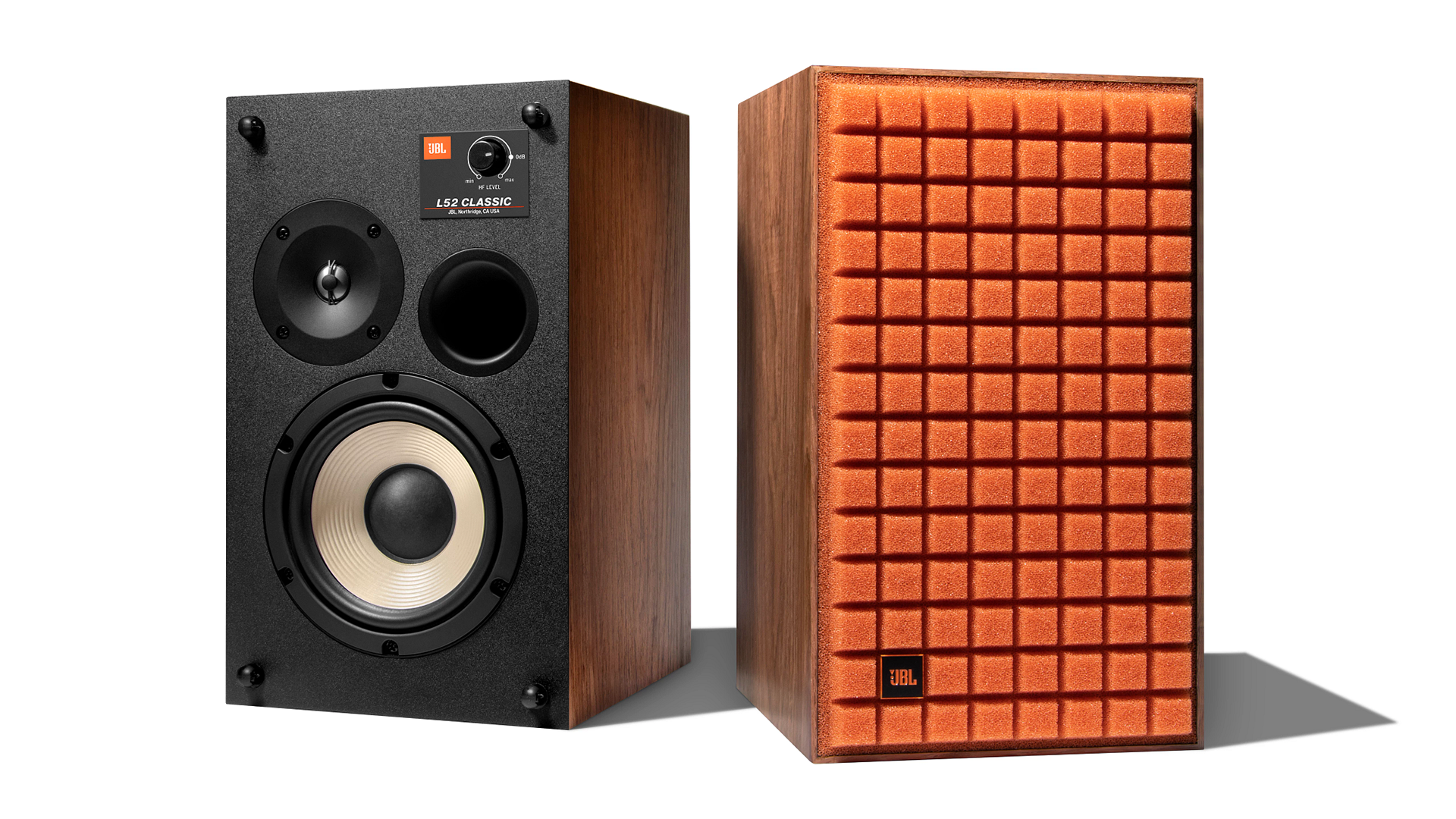 JBL L52 Classic er omtrent på størrelse med et A4-ark og vejer bare fem kg. Men den emmer stadig af klassisk JBL – med et kabinet i valnøddefiner og selvfølgelig den velkendte skumfront, som fås i sort, blå og (retr)orange.