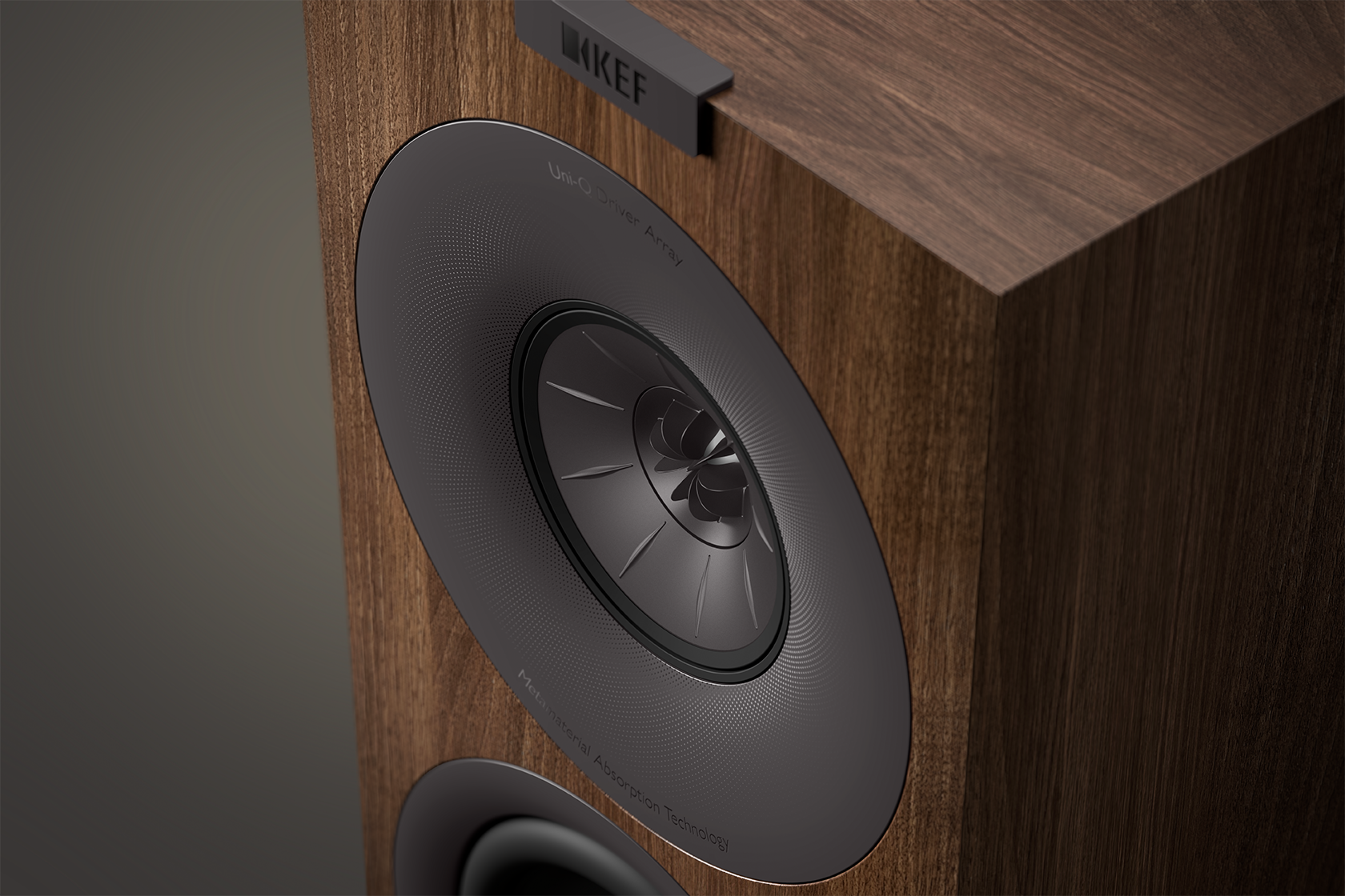 Alle Q Meta-højttalere er udstyret med KEF’s Metamaterial Absorption Technology – MAT – som er en labyrintlignende rund skive, der absorberer uønskede lydbølger fra bagsiden af enheden.