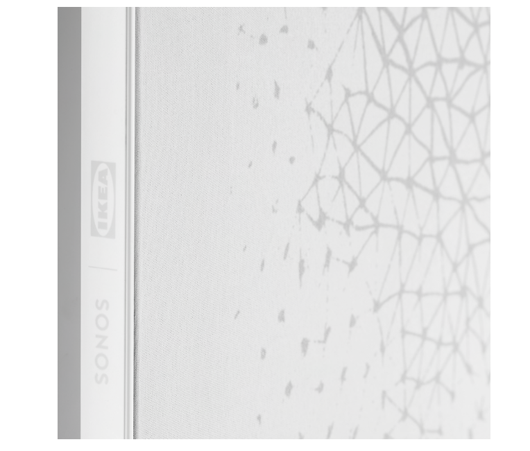 Foreløbig får vi kun et udsnit af højttaleren at se; den ligner en billedramme med indbygget højttaler. I stedet for at indramme et almindeligt billede har Sonos og IKEA altså sat en højttaler i med stoffront foran.