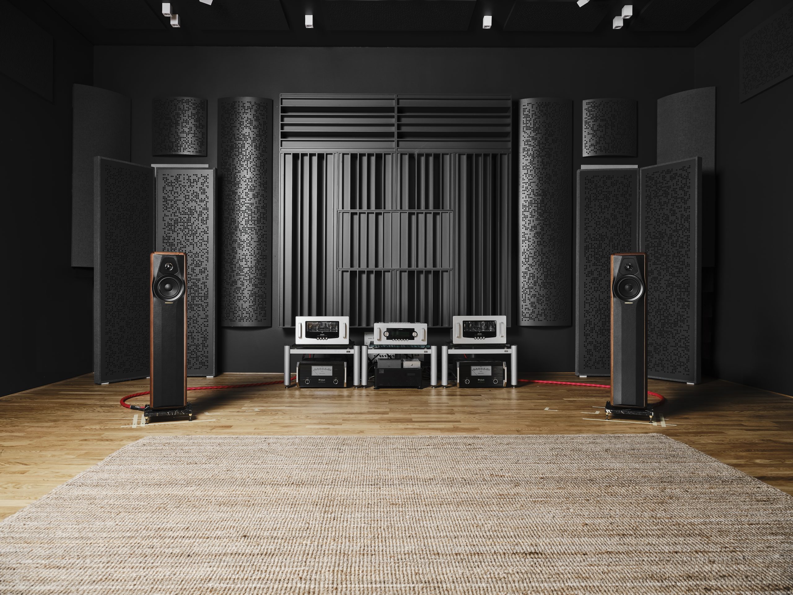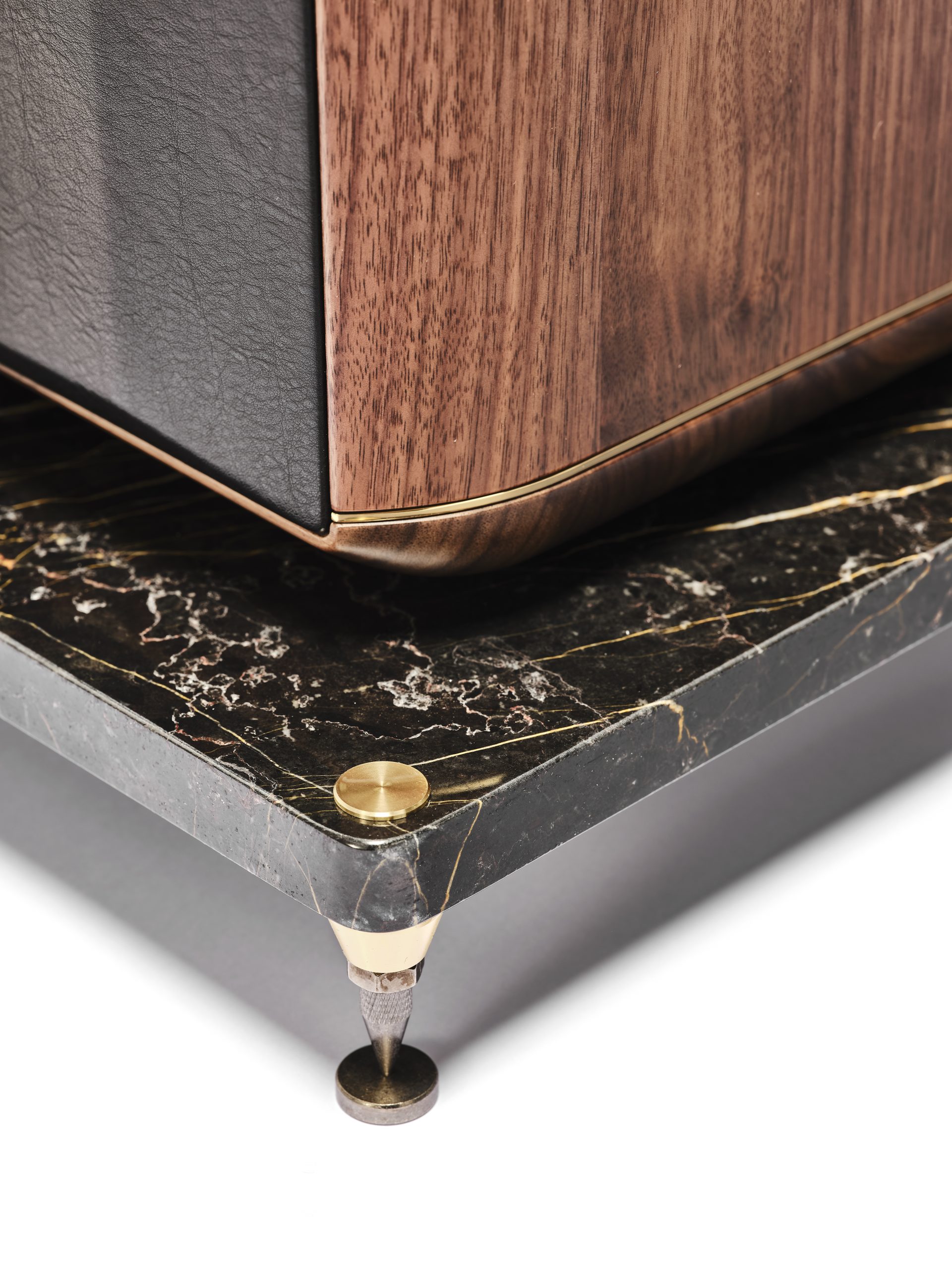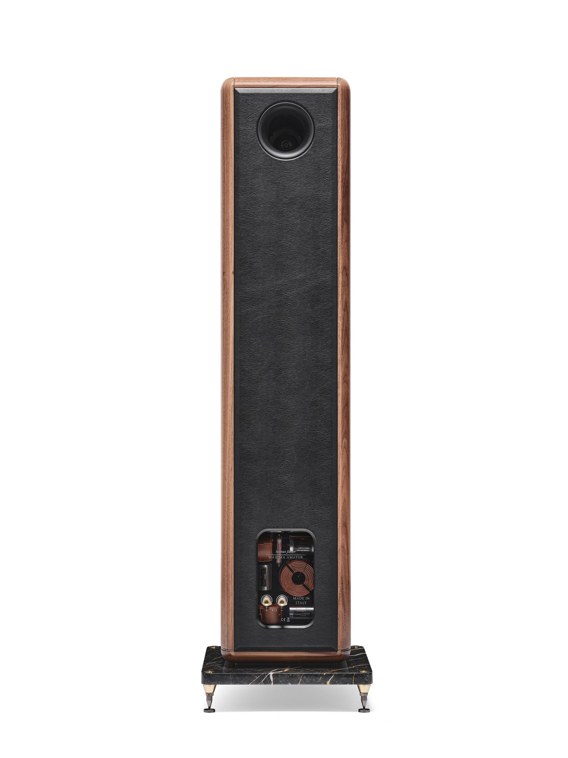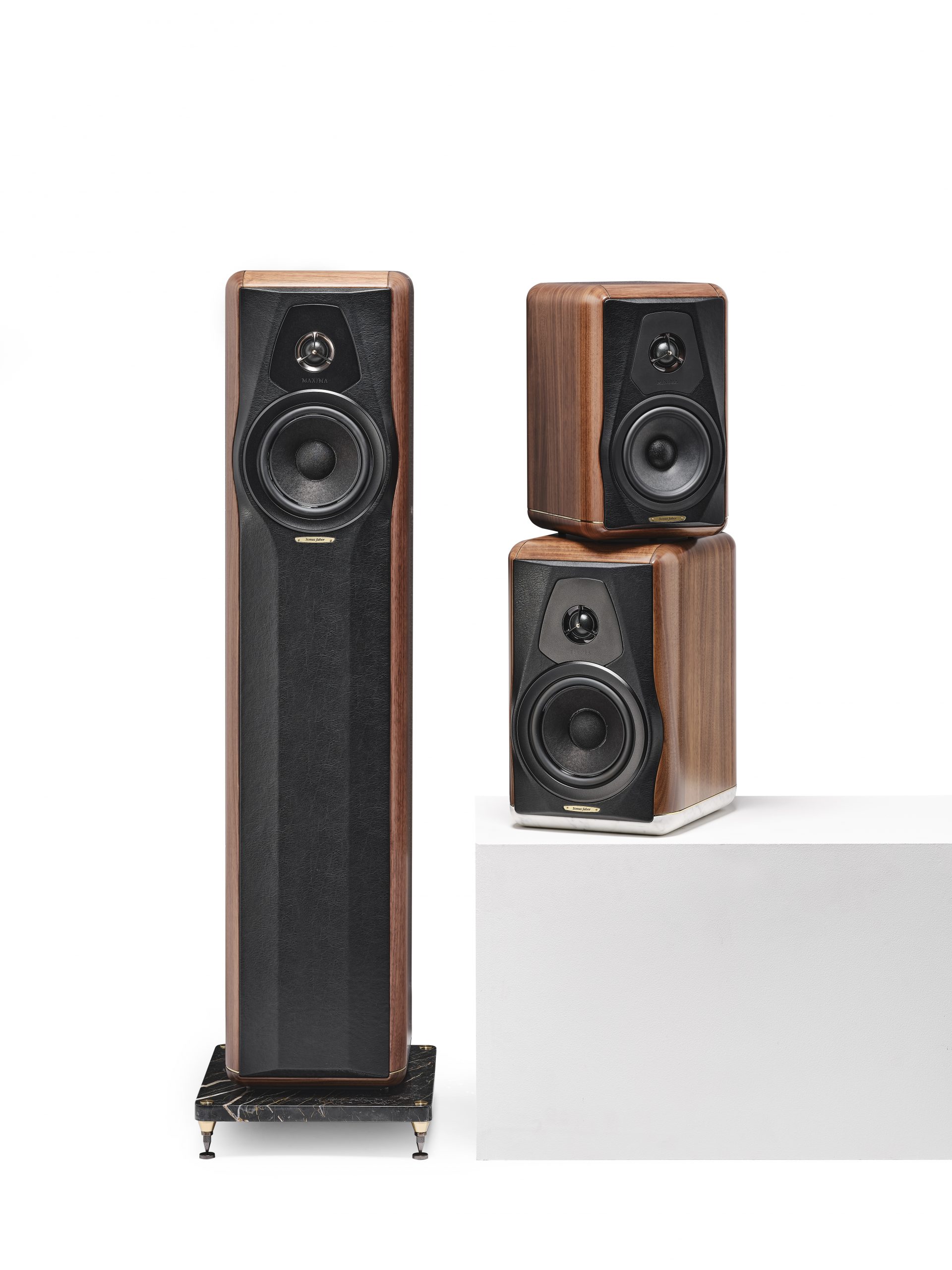 Maxima hører til Sonus fabers Heritage-serie; derfor genintroduktionen af det ældre kabinetdesign, som her strækker sig helt ned til marmorbasen i bunden.