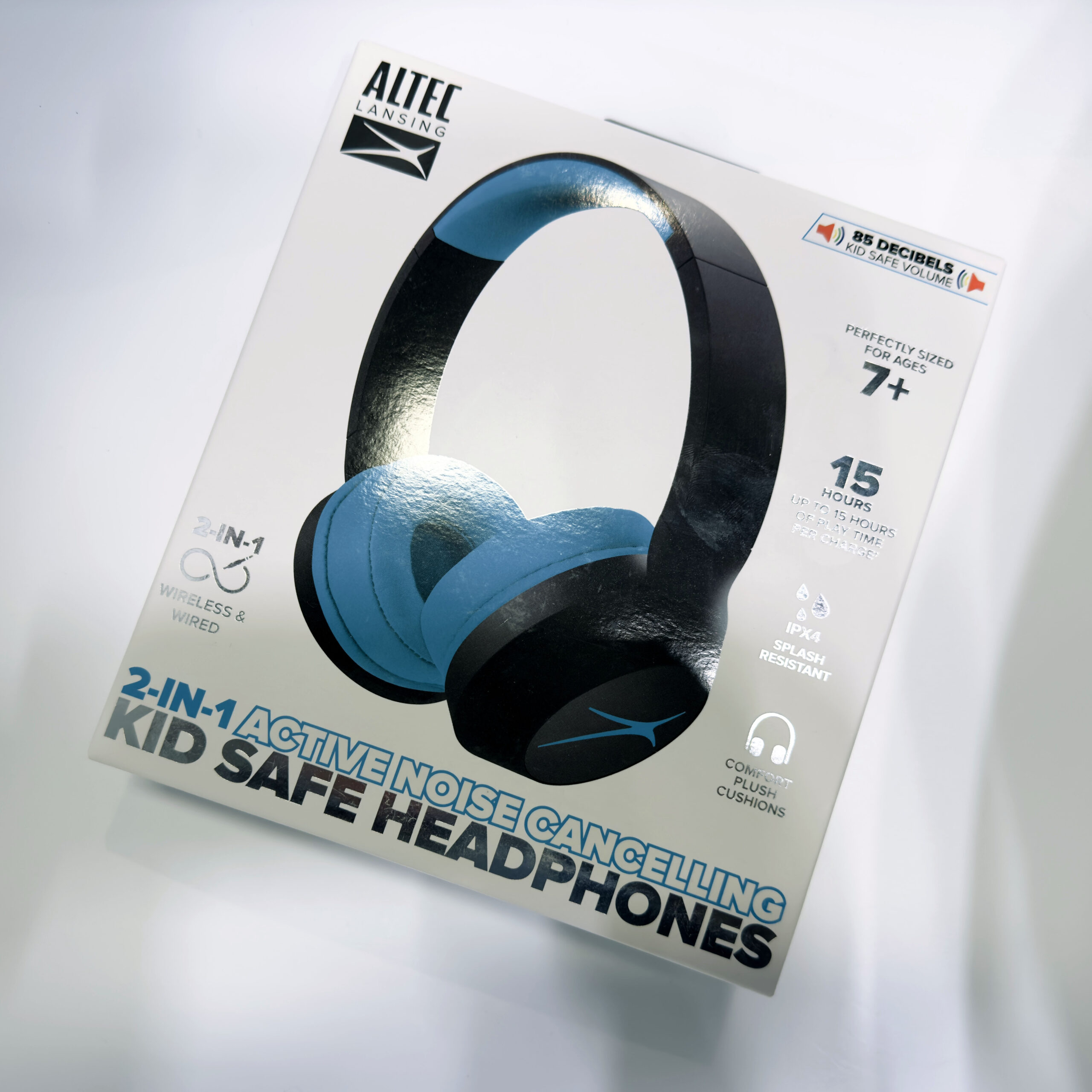 Den kaldes ANC Wireless 2in1 On-Ear og fås i sort, blå og lyserød. Den er trådløs og har aktiv støjreduktion. Hovedtelefonen er ikke beregnet til de mindste børn; Altec Lansing siger, at de passer bedst til børn på 7-8 år eller ældre. De spiller i op til 15 timer på én opladning og kan tåle at være ude i regnvejr.