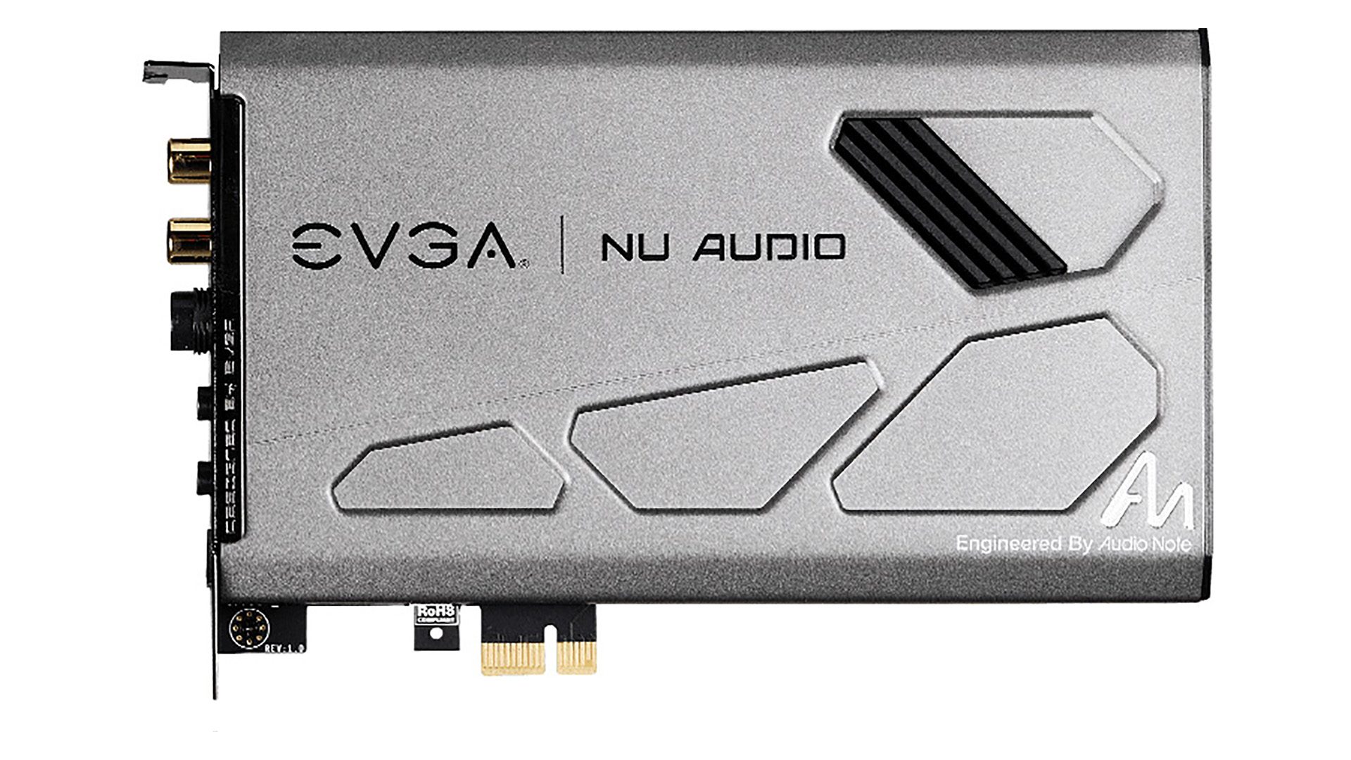 EVGA Nu Audio, som kortet hedder, er et lydkort i den solide ende af skalaen. Al elektronikken er gemt under et metalskjold, der skal isolere den fra de støjende omgivelser inde i pc’en. På EVGAs hjemmeside kan man desuden læse, at printbanerne er sølv- og guldbelagte, og at analog- og digitalsiden har separat stel. Digitalsiden ser ud til at være på niveau med den analoge, med en opløsning på op til 32-bit / 384kHz.