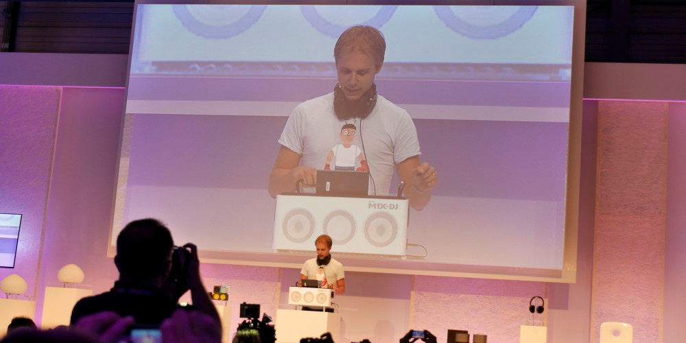 Den sjoveste nyhed var imidlertid hjemme-DJ-stationen M1X-DJ, som er udviklet i samarbejde med stjerne-DJ’en Armin van Buuren. Den er bærbar og fungerer på samme måde som “rigtigt” DJ-udstyr. Og Armin lovede, at den spiller HØJT. Den kommer på markedet i november til en pris af 400 euro.