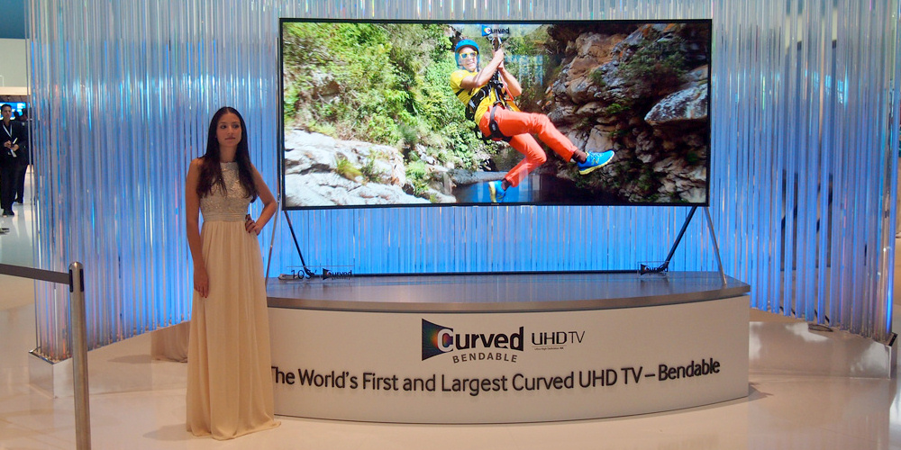 Samsung har siden tidligt på foråret fokuseret på buede fjernsyn, og intet tyder på, at de vil strække våben foreløbig. I den nyopførte messehal CityCube fremviste de krumme tv i alle størrelser og formater. Et af dem endda med motorstyret justerbar skærm, så man selv kan vælge, skærmen skal være flad eller krum!