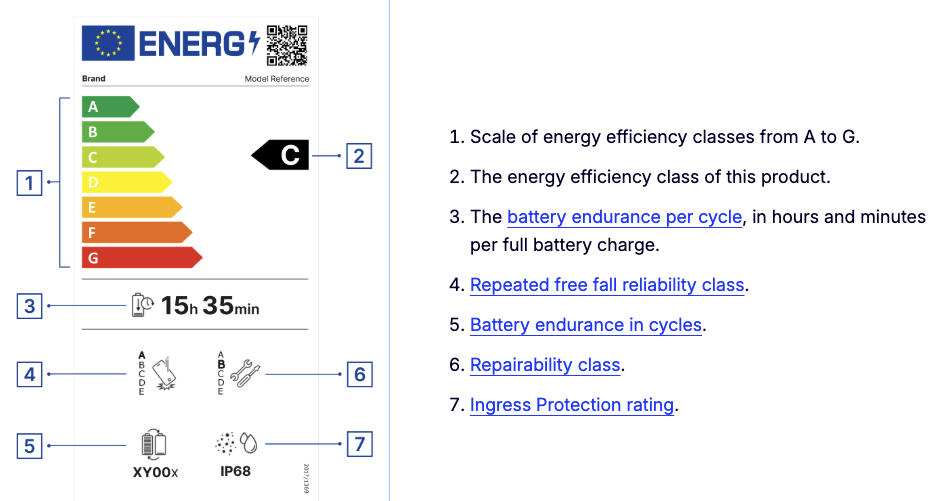 Producenterne skal udsætte mobilerne for en række standardiserede tests. De skal oplyse, hvor meget telefonerne tager skade af fald, hvor lette de er at reparere, hvor mange opladningscyklusser de tåler, og hvor støv- og vandtætte de er. Derudover skal de også angive, hvor længe batteriet holder.