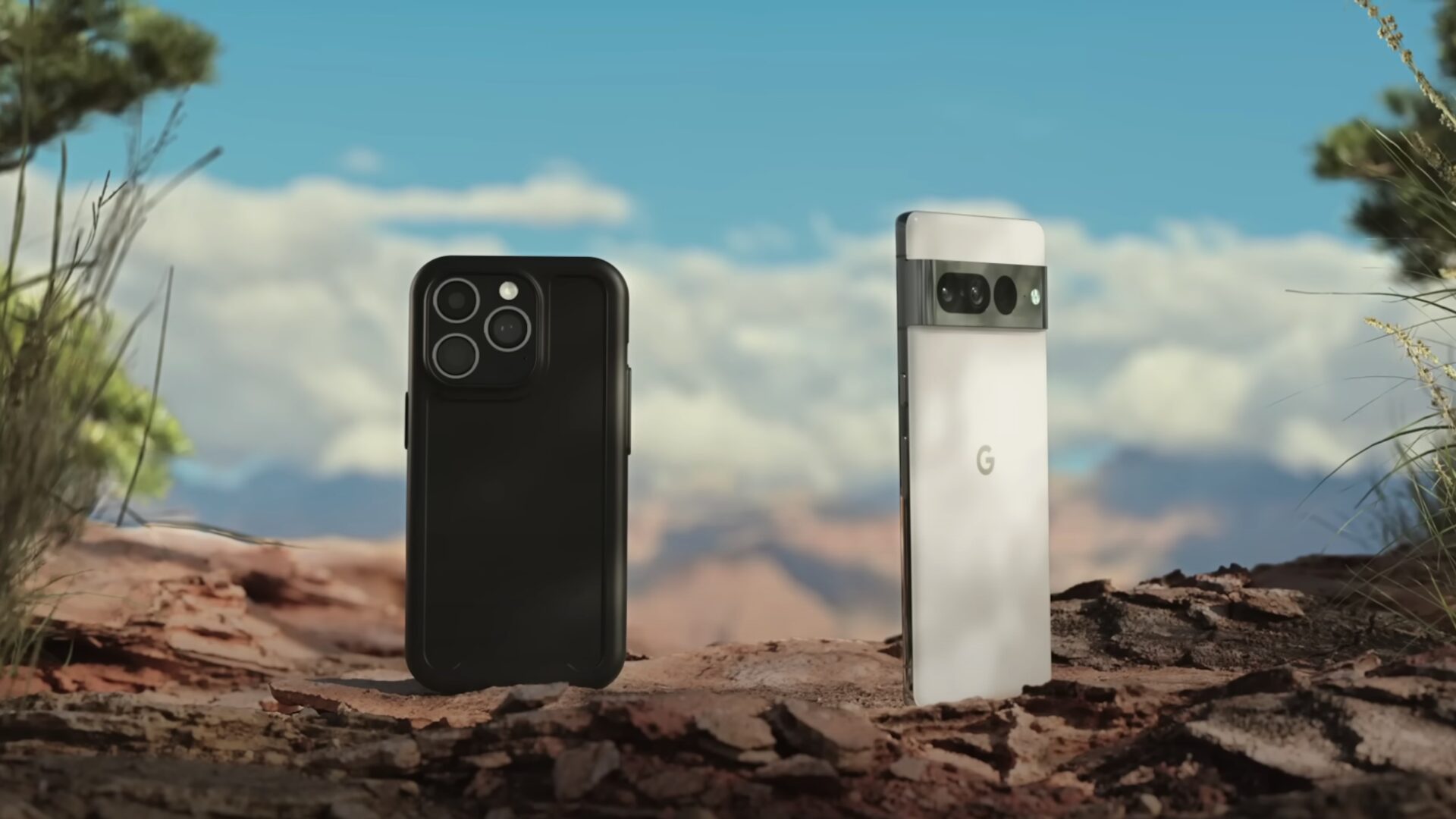 To smartphones taler sammen, mens de nyder udsigten – en Apple iPhone og en Google Pixel. Og rollefordelingen er ikke til at misforstå. Den gamle iPhone beklager alle de ting, den ikke kan, og mindes bedre tider, hvor folk stod i kø i timevis for at købe den.