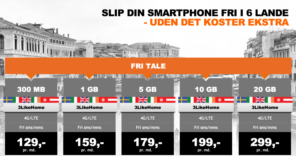 “Fra den 17. marts kan 3’s kunder benytte mobilen i en række lande inden og uden for EU på samme vilkår som i Danmark uden, at det koster ekstra. Det gælder data, fri tale, sms og mms,” stod der endvidere, og senere i pressemeddelelsen understreges det, at det nye, gratis roaming-produkt, som 3 kalder for 3LikeHome, blandt andet indeholder sms/mms til danske numre, samt at data forbruges fra fra den almindelige data i abonnementet.