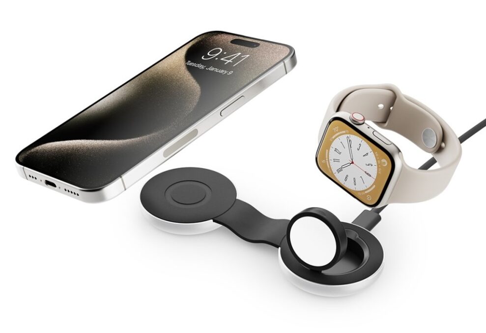 Butterfly er mindre end en snusdåse, men når du åbner den, finder du både en iPhone Magsafe-oplader og en Apple Watch-oplader, der kun kræver en AC-adapter og ledning. Det smarte er, at den også fungerer som et stativ. Du kan enten stille din iPhone op i vandret tilstand, hvilket aktiverer StandBy. Eller du kan folde Apple Watch-opladeren op, hvilket aktiverer urets natbordstilstand, så det fungerer som et vækkeur.