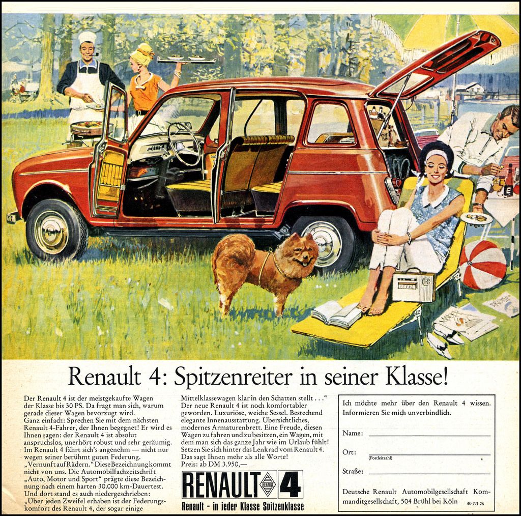 For en ordens skyld vedhæfter vi en tysk reklame for Renault 4 for at genopfriske hukommelsen for dem, der har glemt, hvordan originalen så ud.