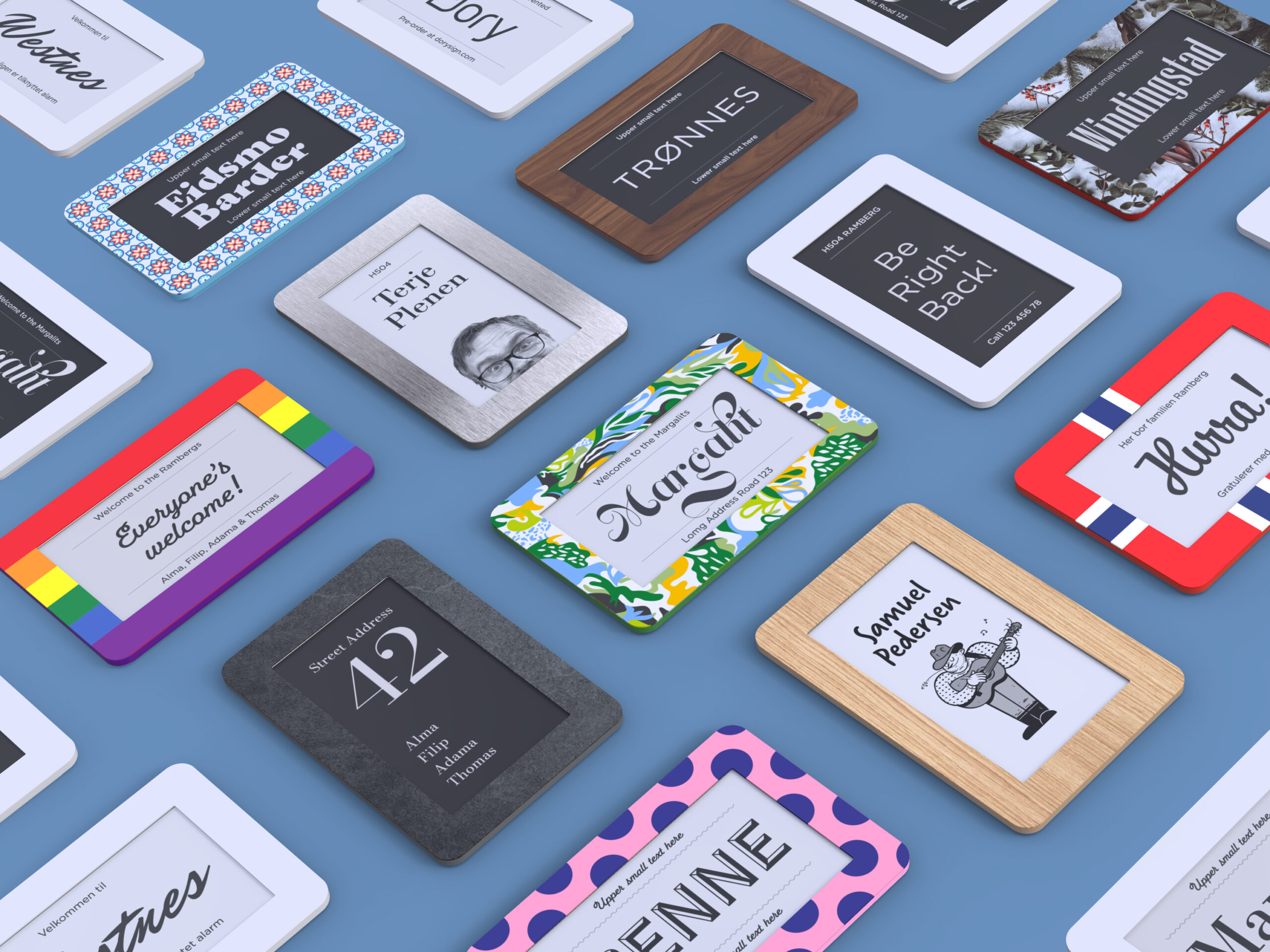 Det er et dørskilt, hvor tekst, grafik og billeder i sort-hvid vises på en 5,2 tommers skærm med E Ink, elektronisk blæk. Indholdet på skærmen ændres, når man vil, med en app, og her er det kun fantasien, der sætter grænser for indholdet. Man kan ønske velkommen til en fest, meddele, at man er ude at rende et ærinde, eller ganske enkelt lave en fin tegning, der illustrerer, hvem der bor her.