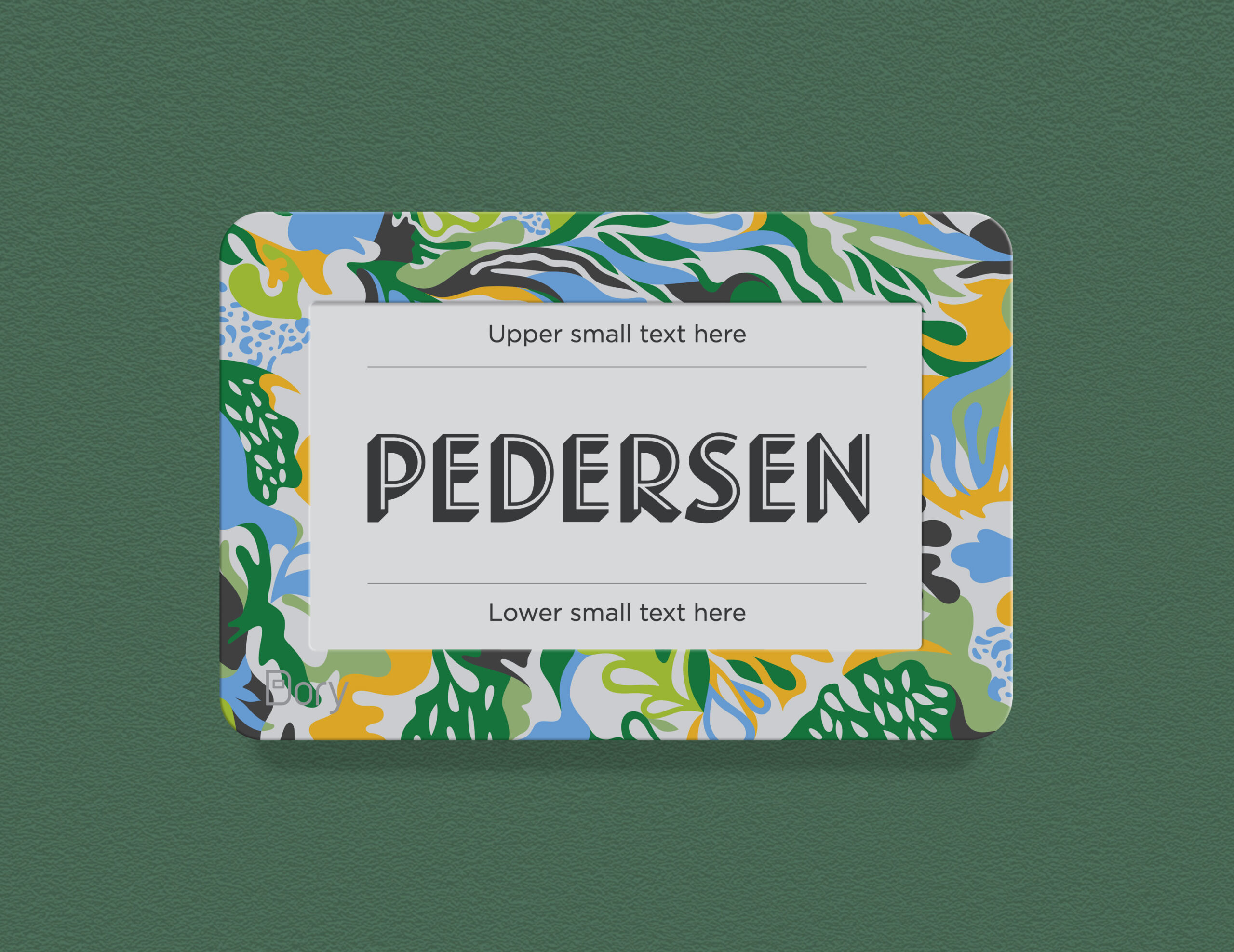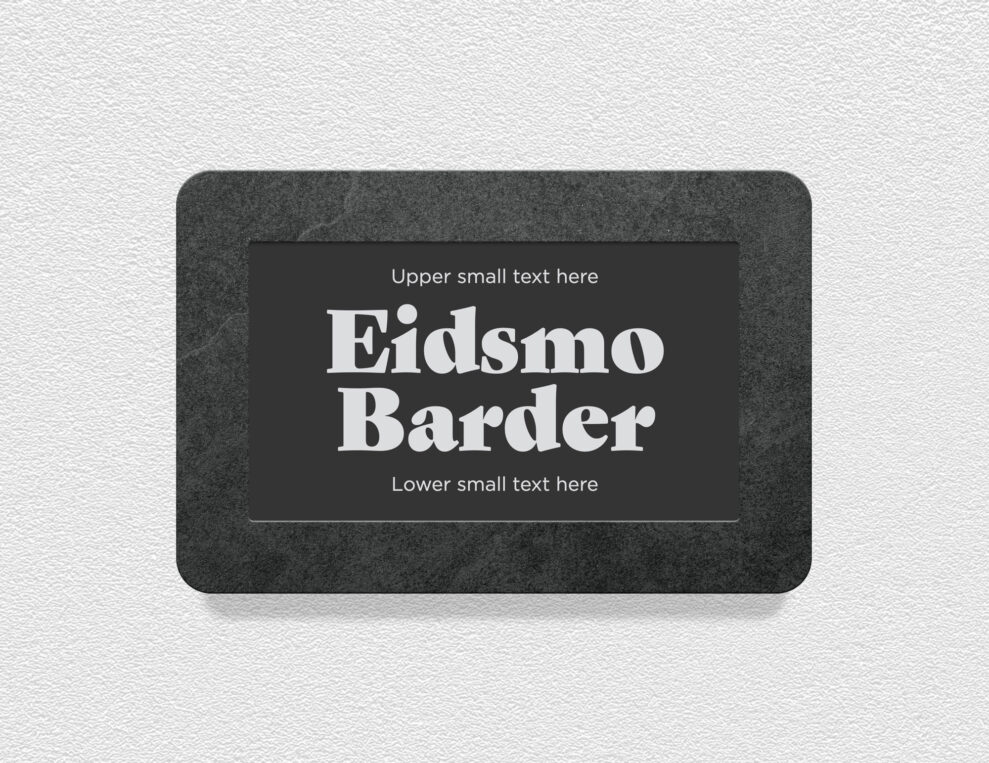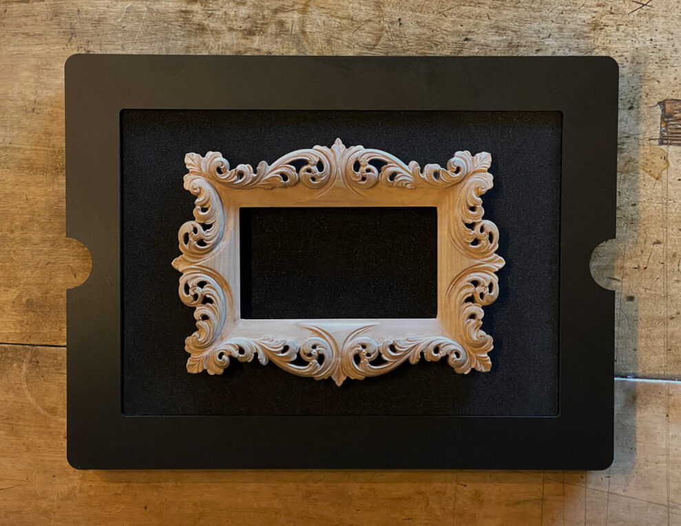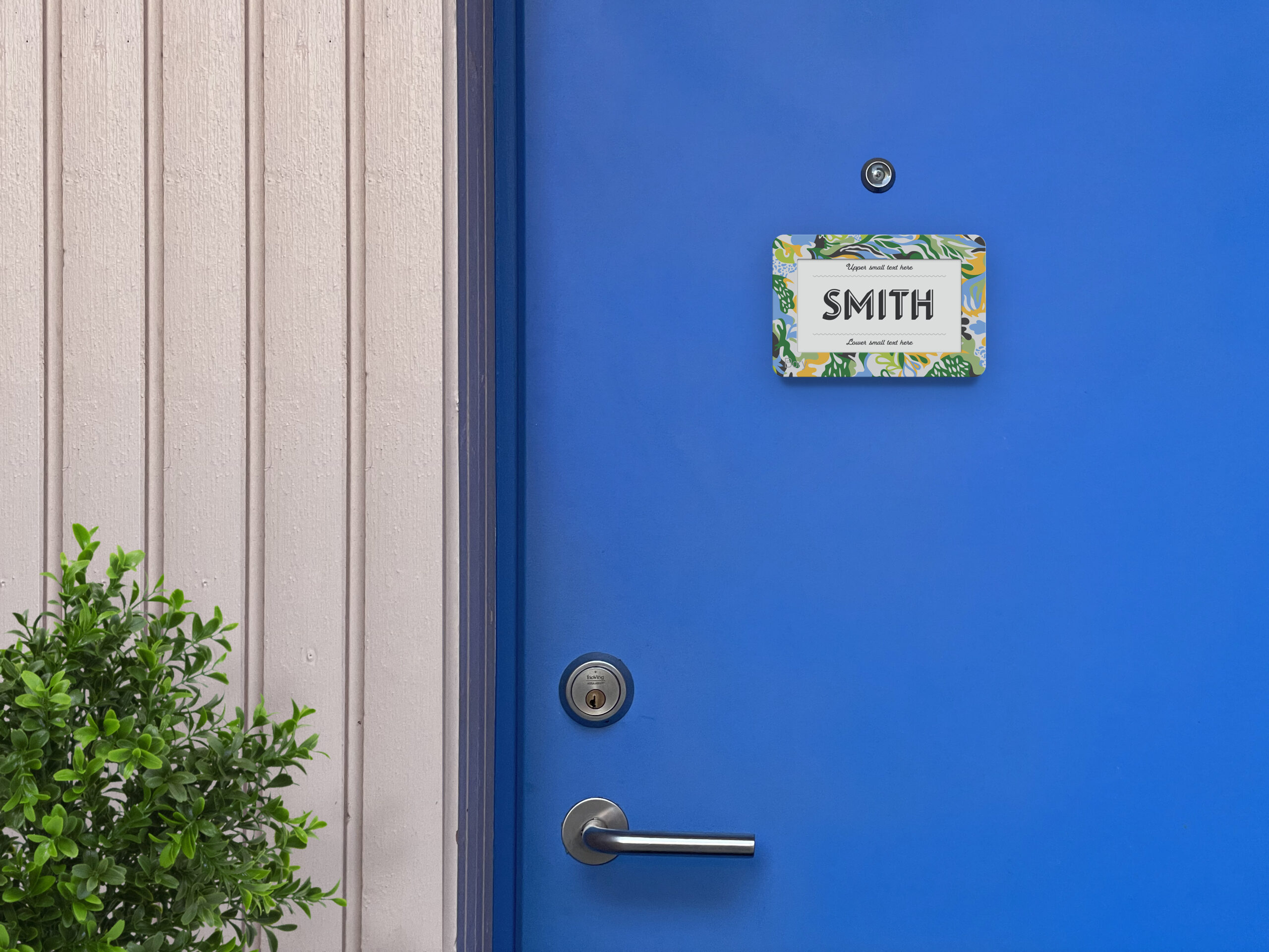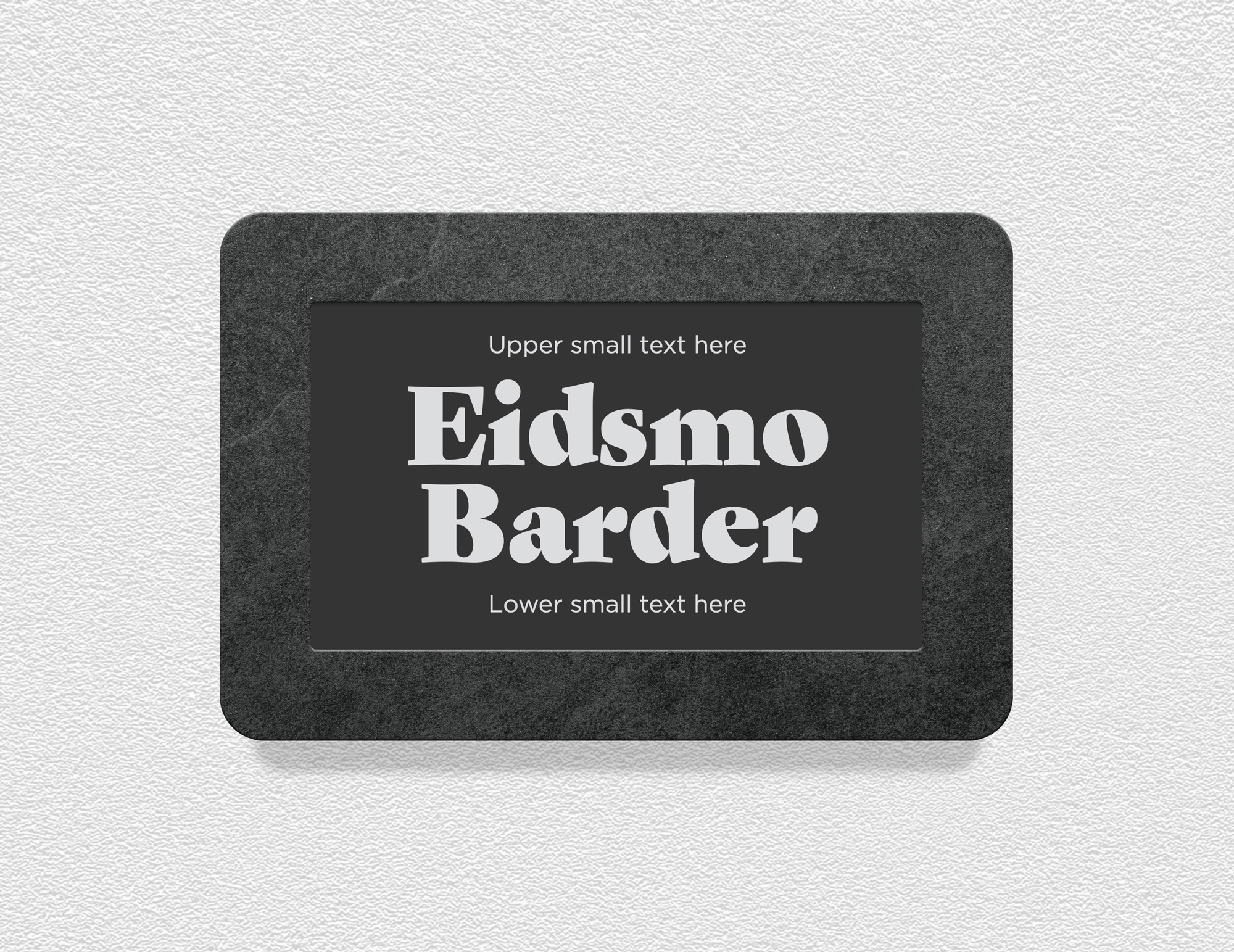 Dørskiltet kan udstyres med forskellige rammer, som kan købes separat og let klikkes på. Nogle af de første rammer er designet af Sandra Blikås, Anti og Kvass, som har lavet en ramme i udskåret træ.