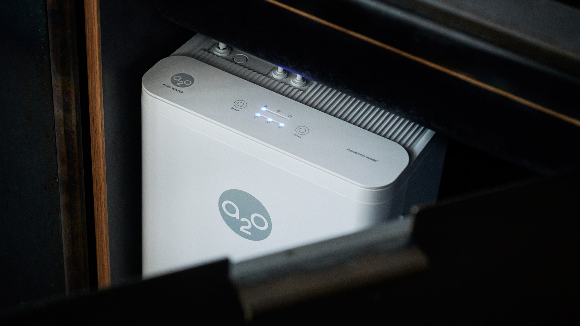 A2O Pure kræver ingen bordplads og kan installeres direkte under vasken. Ifølge virksomheden bruger A2O Pure et unikt vandrensningssystem, der er baseret på nobelprisvindende forskning og anvender naturlige aquaporin-proteiner. Teknologien gør det muligt for A2O Pure at levere filtreret vand gennem membranerne – fri for forurenende stoffer og urenheder. Produktet kan producere 2,1 liter vand i minuttet, hvilket giver en pladsbesparende løsning uden en separat vandtank (som normalt er nødvendig i mere traditionelle vandrensningssystemer, hvor vandgennemstrømningen er langsommere).